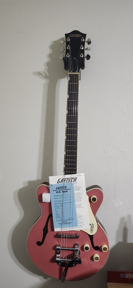 The Gretsch G2655T Streamliner Center Block Jr. Double-Cut Electric Guitar is a stylish and vibrant coral-colored guitar from the Gretsch Streamliner series, featuring a hollow body design. This right-handed electric guitar is equipped with a Bigsby tremolo system, making it perfect for adding smooth and expressive vibrato to your playing. With a 6-string configuration, this model is ideal for musicians looking for a versatile and visually striking instrument to add to their collection in the year 2025. * You will receive a Brand New never opened Gretsch G2655T Guitar, the one pictured was pulled out for photographs and is similar to what you will receive in nww never opened condition *
