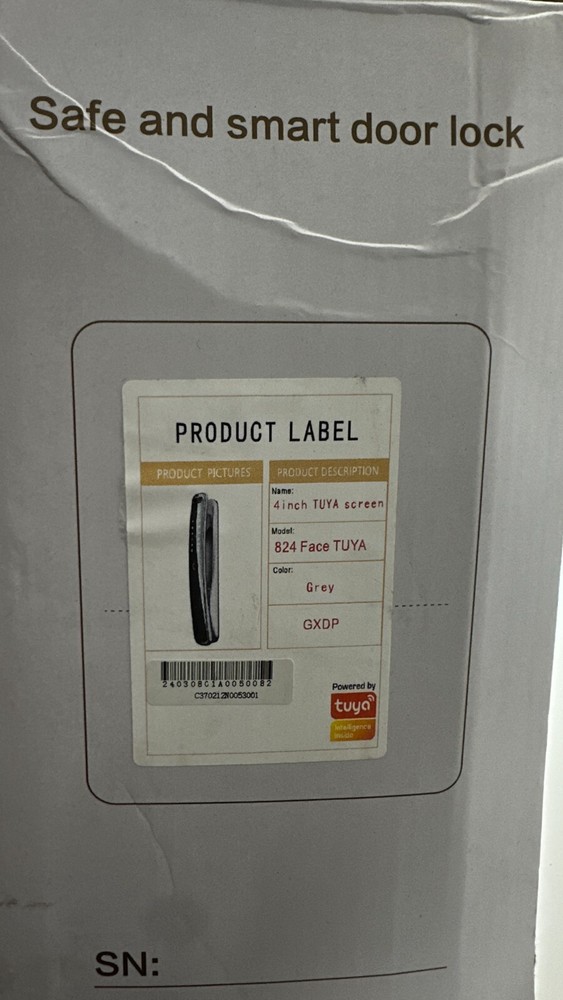 Gray 824 Face Tuya Safe & Smart NB-ioT Door Lock Recognition Camera 4" Screen Description Gray 824 Face Tuya Safe & Smart NB-ioT Door Lock Recognition Camera 4" Screen . Product Detail • Model: 824 Face Tuya • Color : Gray • Type: Door Lock Please message me if you have any questions.