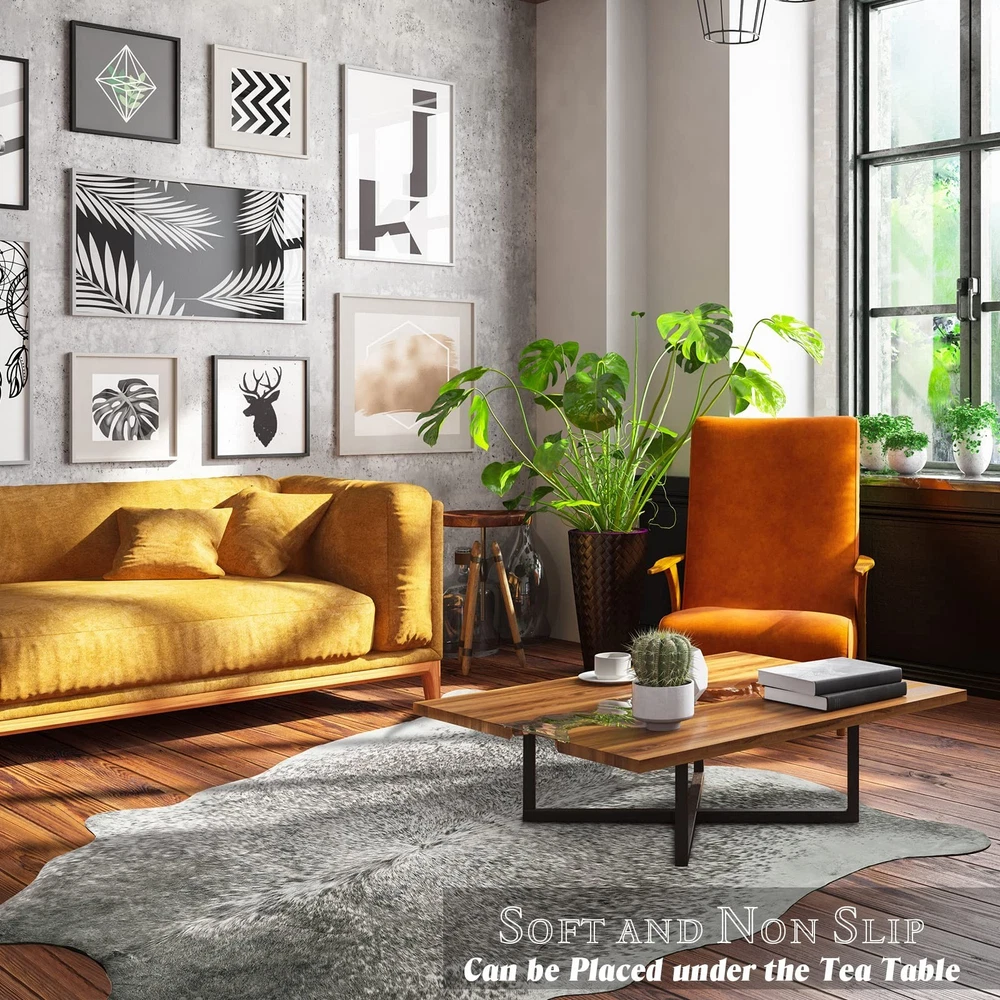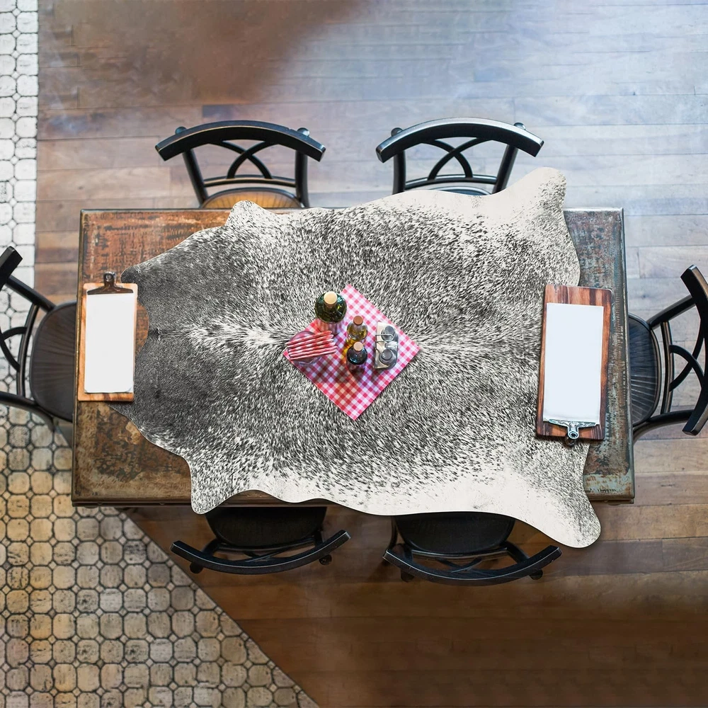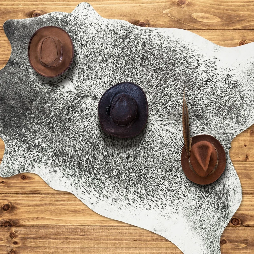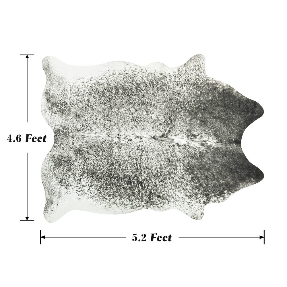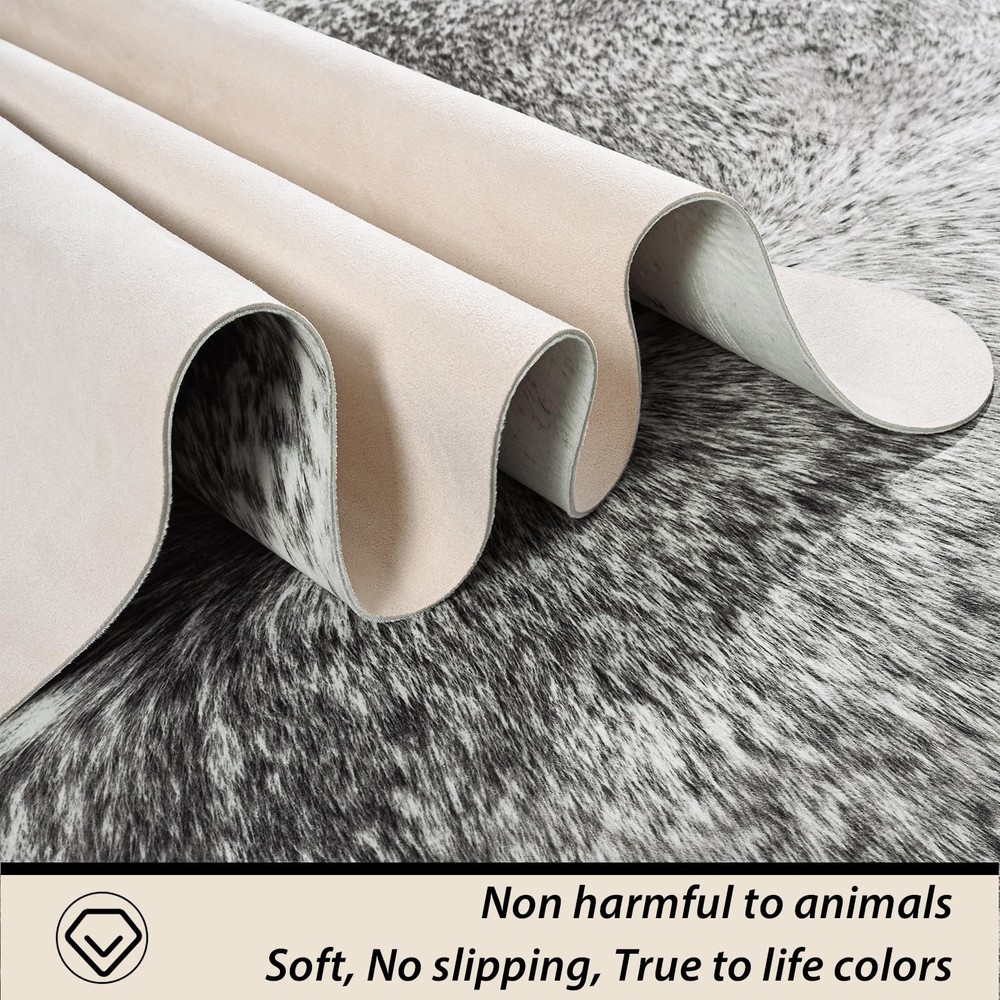 Faux Cowhide Rug for Living Room, 4.6 x 5.2 Feet Grey, Cow Print Skins Rug for Bedroom, Premium Faux Fur Animal Cow Hide Rugs Carpet for Western Decor Product Details Size: 5'2" x 4'7" (Rectangular) Color: Grey Brand: Rtizon MPN: Does not apply UPC: Does not apply EAN: Does not apply Brand: Rtizon Size: 5'2" x 4'7" (Rectangular) Material: Microfiber Weave Type: Machine Made Item Weight: 2.24 Kilograms Brand: Rtizon Size: 5'2" x 4'7" (Rectangular) Material: Microfiber Weave Type: Machine Made Item Weight: 2.24 Kilograms Pile Height: 0.1 Construction Type: Machine Made Back Material Type: Polyvinyl Chloride Color: Grey Indoor/Outdoor Usage: Indoor Theme: Western, Animals, Rustic Vintage Is Stain Resistant: Yes Product Care Instructions: Machine washable/Vacuuming Pattern: Animal Shape: Rectangular Special Feature: Cowhide Print, Soft Suede Backing, Easy to Clean Room Type: Kitchen, Living Room, Bedroom, Home Office, Dining Room Product Dimensions: 55.2"L x 62.4"W Rug Form Type: Area Rug Style: Rustic, Retro Occasion: Thanksgiving Day, Christmas Day, Birthday Min. Required Door Width: 4.6 Feet Number of Pieces: 1 Item Thickness: 0.1 Inches Water Resistance Level: Not Water Resistant Animal theme: Cow Is Autographed: No Model Name: Faux Cowhide Rug Item Weight: 4.93 pounds Manufacturer: Rtizon Country of Origin: China Fabric Type: Microfiber Antibacterial treatment: Vintage Assembly required: No Batteries required: No Microfiber As a rug: Rtizon's faux cowhide rugs use advanced printing technology and precise tailor to mimic the natural color patterns. They make with low pile crystal velvet fabric, can be used as living room rugs, bedroom rugs, dining room rugs, bathroom rugs, doormats, studio and cloakroom rugs, making the whole room full of wildness, charm and artistic atmosphere As a mat: The soft suede backing of the cow print carpet will not move freely, which can well protect the floor from moisture and scratches. It is also a great choice for sofa cover, chair mats, and coffee table mats, making the entire space unique and cute As decorations: The natural colors and printing make the entire faux fur cow hide rug easily decorate any space and create a luxurious atmosphere. It is very suitable as home decorations, photo props and gifts for western, rustic, vintage, primitive style rooms or theme parties Cleaning tips: The cow area rug can be vacuumed to remove the dust and dirt on the surface. When there are stains, wipe it with mild detergent and a damp cloth. You can also put it in a laundry bag and wash it in the gentle mode of the washing machine, and let it dry naturally Warm note: The animal skin rug with a thickness of 0.12 inches can be rolled up and moved at will. The exquisite faux fur rug may have creases due to vacuum packaging and transportation, and the creases can be reduced by spreading it out for 2-3 days