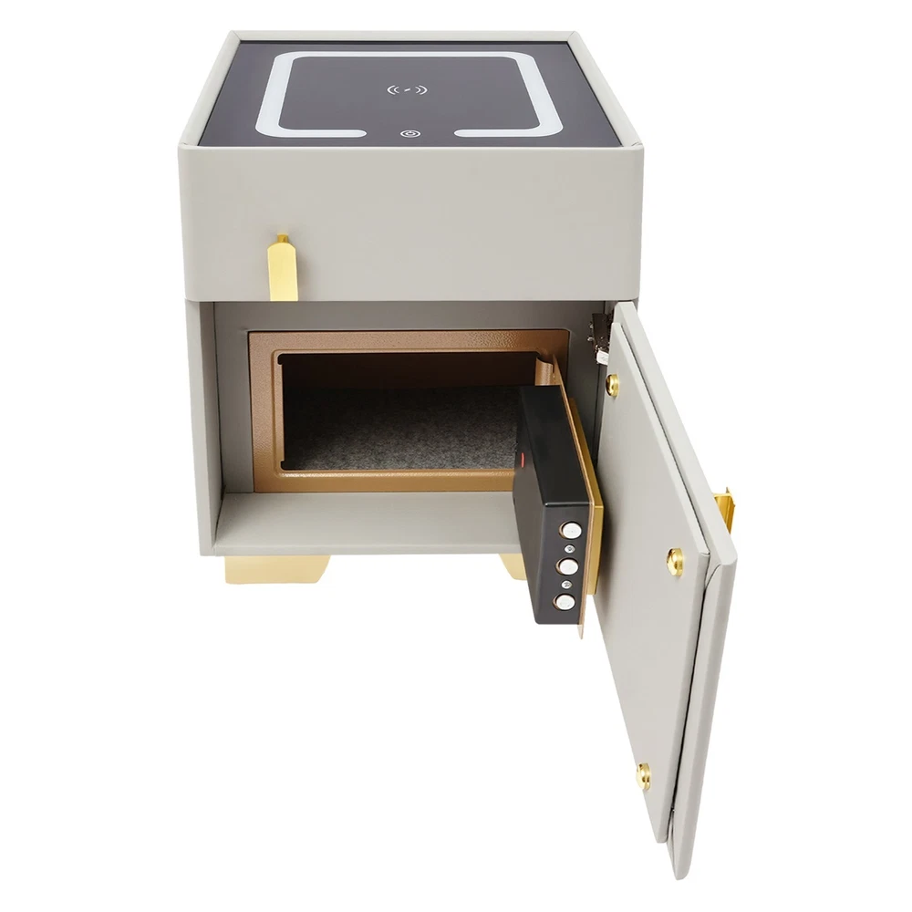 Description This bedside cabinet is not only sturdy and durable but also thoughtfully designed and powerful. The safe design and drawer make it easy for you to store your important items, and the advanced electronic combination locking device supports customized password settings for easy operation and high security. It also integrates charging ports, and Bluetooth speakers, allowing you to say goodbye to extra power strips and reserved space for the speaker. With this product, you can create a neat and cozy bedroom environment. Key Features Sturdy and Durable : Premium tempered glass, pine wood, microfibre, metal, and density board make this product wear-resistant, corrosion-resistant, impact-resistant, and not easy to deform, so it can maintain aesthetics and practicality for a long time. Dual Charging Methods : You can charge your mobile phone by placing it in the corresponding area, getting rid of the bondage and solving the trouble of finding the charging cable. For mobile phones that do not support wireless charging, you can charge them through the USB interfaces with your USB cable. Storage Assistant: The drawer and safe design provide ample space for sorting and storing various items such as documents, cosmetics, and jewelry(all are not included), creating a neat and organized environment. High Security : The password and keys allow you to choose one to unlock the safe according to your actual situation, greatly enhancing the convenience of use. The customizable personal password and triple locking bolts provide extremely high anti-theft performance, ensuring that your valuable items are well protected. Smart Life: The Bluetooth audio allows you to quickly connect your phone's Bluetooth within a 32.81ft range, making it easy to play and transfer music, providing a more relaxed and comfortable listening experience, and creating your private theater. Heavy Duty Design: The heavyweight (37.48lbs) and sturdy screw-fixing design, and heavy-duty feet make it hard to move and carry, preventing theft from easily carrying the whole box. Elegant and Modern: It adopts a classic grey color appearance that can match most decorating styles and color themes, adding elegance and refinement to your bedroom and enhancing the overall style of the space. Ideal Gift : Beautiful appearance and practical function make it can be a housewarming gift for friends. Good Customer Service: We stand behind all our guests and look forward to assisting you with your purchase. It is our pleasure to answer your confusion and questions. The end of the story between us is not "we sell and you buy". Details 3-colour Ambient Light: It lights up with a gentle touch and can be adjusted to white, warm, or neutral so that you can wake up at night without fear of darkness. Practical Handles : They provide a comfortable and safe touch, making it easy for you to push and pull the drawer and door. Raised Edges: They can prevent phones or other items from accidentally falling off, ensuring safe use. Application The product is suitable for offices, homes, and other places for storing all kinds of valuables such as jewelry, documents, passports, and money. Specifications Material: Tempered Glass, Pine Wood, Microfibre, Metal, Density Board Color: Grey Style: Modern Shape: Rectangular Mount Type: Floor Standing Assembly Required: No Plug Type: US Standard Adapter Input: 100-240VAC 50/60HZ Adapter Output: 12V 3A Light Source: LED Light Color: White, Warm, Neutral Color Temperature: 6000K, 4500K, 3000K Unlocking Method: Password/Key Safe Box Battery Type: 4*AA Batteries Initial Password: 159b Bluetooth Connection Distance: 10m/32.81ft Product Size: 40*40*50cm/16*16*20in Package Size: 52*45*45cm/20.47*17.72*17.72in Gross Weight: 18kg/39.68lbs Net Weight: 17kg/37.48lbs Package Included 1*Bedside Cabinet 2*Keys 1* Adapter 1*English Manual 1*Chinese Guide 1*Key Storage Bag Notes Please confirm the installation dimensions before purchasing. Please read the user manual carefully and pay attention to the safety precautions before use. Please note that the USB plug is installed on one side only. Please be careful not to put the key into the safe. If you enter the wrong password 3 times in a row, you must wait 20 seconds and retry. If the wrong password is entered again 3 times, you must wait 5 minutes before retrying. If the battery is low, the red light located in the center of the panel will illuminate. Please allow the slight color difference caused by the shooting light and 1-3 cm error due to manual measurement, and make sure you do not mind before ordering. Payment Delivery details Terms of sales About us Contact us Payment We accept ebay payment 。 Fees such as import duties, taxes are not included in the item price or shipping costs. These charges are the buyer's responsibility. Delivery details Shipping: 2-9 working days to: USA Terms of sales We maintain high standards of excellence and strive for hundred percent customer satisfaction. Feedback is very important to us. We hope that you contact us immediately before you give neutral or negative feedback, so that we can address your concerns. It is impossible to address issues if we do not know about them! About us Your satis faction is our ultimate goal. We work hard to earn your trust and future business. Our certified technicians have tested each item before shipping. The unit comes with 1 year limited warranty on all manufacturing defects. a) If you receive a defective item, you may return it or ask for a discount. Please contact us within 14 days after you receive the package. b) What you returned must be intact and in its original packaging as re? u. Customer is responsible for shipping costs of the returned item. c) We will cover the cost of shipping back t with the shipping rate indicated in the registration page. We will send you a new unit or refund the full payment you paid. Thank you. Contact us Business Hour Business Hour: Monday To Friday: 8:30 AM to 5:00 PM (Beijing