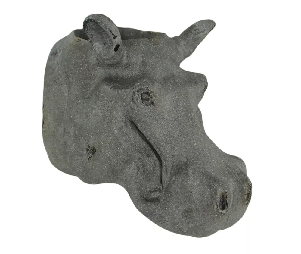 Every big animal lover should have a planter like this at their home to plant some greenery or flowers in. This hippopotamus doesn't care if it's real or fake. You can hang it inside, or take it outside to a balcony, lawn, patio, or garden wall. The grey finish is distressed, and looks just like aged stone, perfect for the outdoors. This 10.5-inch long, 10.25-inch high, 7.5-inch wide hippo head planter statue is a fun piece that brings a touch of exotic character anywhere. Our eBay Store About Us Add to Favorite Sellers Grey Stone Finish Hippo Head Hanging Planter Statue Outdoor Décor OVERALL SIZE - 10.5 Inches Long, 10.25 Inches High, 7.5 Inches Wide Creatively Cast in Resin Designed for Indoor or Outdoor Use with a Pre-Installed Sawtooth Mounting Hanger On the Back Distressed Gray Finish Gives it the Look of Aged and Weathered Stone An Exotic Decor Piece You Can Fill with Artificial or Fresh Greenery or Flowers and Add a Pop of Color to Your Living Room, Patio, Lawn or Garden Great as a Gift Sure to Excite Any Hippopotamus or Big Animal Lover Every big animal lover should have a planter like this at their home to plant some greenery or flowers in. This hippopotamus doesn't care if it's real or fake. You can hang it inside, or take it outside to a balcony, lawn, patio, or garden wall. The grey finish is distressed, and looks just like aged stone, perfect for the outdoors. This 10.5-inch long, 10.25-inch high, 7.5-inch wide hippo head planter statue is a fun piece that brings a touch of exotic character anywhere. Product Details Color Gray Height 10.25 Length 10.5 Weight 3.8 LB