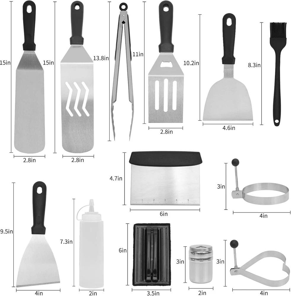 Store New Arrivals Add to Favorite View Feedback Contact Griddle Accessories, 16Pcs, Griddle Spatula Set for Blackstone and Camp Chef Stainless Steel BBQ Accessories with Spatula, Scraper, Bottle, Tongs, Egg Ring Description Item dimensions L x W x H 1 x 1 x 1 inches Number of Pieces 16 Item Dimensions 1 x 1 x 1 inches Material Stainless Steel Material Type Stainless Steel Handle Material Metal,Silicone,Stainless,Stainless Steel,Steel Is the item dishwasher safe? No Included Components Spatula Professional Grade Stainless Steel: Our griddle accessories are crafted from 304 food-grade stainless steel, providing exceptional hardness and durability while ensuring safe and healthy food preparation. With the ability to easily handle foods such as hamburgers, patties, and steaks, our sturdy and thick stainless steel design is built to withstand long-term use, making it a nice barbecue accessory. Long-Lasting Quality: Our grill accessories are surface-treated with anti-rust technology to minimize the possibility of rusting. After use, simply allow them to air dry and store them in the included bag, reducing the need for additional maintenance steps like applying slushing oil to the metal surface. This makes our tools both convenient and long-lasting. Note: To avoid damaging the protective layer, do not use a sharp cleaner to scrub the surface of the tool. Complete Grill Set: You'll receive a full 16-piece grill tools kit, which includes 1 large spatula, 1 small spatula, 1 small slotted spatula, 1 hamburger spatula, 1 silicone brush, 1 grill locking tong, 1 chopper, 1 scraper, 1 Cleaning Brush, 2 sauce dispensers, 2 spice shaker, 2 egg molds, and 1 carry bag. Our BBQ set is the most comprehensive on the market, capable of meeting all your needs. Heat-Resistant Handle: Our handles are designed to be long enough, fitting adult male hands comfortably. Constructed from ABS heat-resistant, they effectively block the transfer of heat. This means that even when the griddle is working at high temperatures, your hands will remain cool and protected. It's also perfect for those who want to help with cooking. The Perfect Gift: Our barbecue tools are suitable for yard, outdoor, and camping barbecues, making them an excellent gift choice for Father's Day, Thanksgiving, and Christmas. This versatile set of tools is an indispensable aid for foodies looking to explore their culinary journey. Product Description Whonline is committed to establishing a brand of gardening tools that meet the various needs of customers. Our efficient tools will help you take care of your cute greenery more easily, and at the same time let you embrace the fun of gardening. Although our scale is small at present, we will continue to develop convenient and practical high-quality products that satisfy you and facilitate your green and healthy life. Complete Grill Set: 1 large spatula, 1 small spatula, 1 small slotted spatula, 1 hamburger spatula, 1 silicone brush, 1 grill locking tong, 1 chopper, 1 scraper, 1 Cleaning Brush, 2 sauce dispensers, 2 spice shaker, 2 egg molds, and 1 carry bag. All these will help you become a professional chef for teppanyaki in camping. Food Grade Stainless Steel Food grade stainless steel is not only sturdy and thick, but also healthier and safer. High-quality stainless steel will greatly increase the life of these tools. Hanging Holes Design The sturdy ABS plastic handles are designed with hanging holes, simply hang them on the grill hooks or kitchen hooks so that these tools could be organized and stored easily. Easy to Clean Our 16pcs griddle accessories set includes a scraper and a cleaning brush to help you complete the cleaning work effectively without harming your griddle. ABOUT US We offer the best prices around on high quality products. Our E-store includes media such as books, movies, music and games while offering electronics, toys, sporting apparel, clothing, tools, general home, garden items and more. SHIPPING We are always working hard to ensure your package arrives as soon as possible. Please understand that some factors like weather, high postal traffic, and the performance of shipping companies are outside of our control. We offer free shipping to the lower 48 states and ship within 2 business days of payment, usually sooner. We do not accept P.O. Boxes. Please provide a physical address. For shipping outside of the continental USA, we only use eBay's Global Shipping Program.The item is shipped to KY and then sent to the rest of the world. International customers are responsible for all duties and taxes. Continue to check out in order to calculate costs for shipping the item to your country. Messages regarding eBay's Global Shipping Program MUST be directed at eBay EXCLUSIVELY. RETURNS We offer a 30-Day Return Policy on items which you are not completely satisfied with. You have the option for a full-refund or an exchange of the item. No returns are available on items shipped outside of the USA. PAYMENT We accept PayPal. CONTACT US This page content is yet to come Please ad us to your favorite seller and visit again later Thank You CUSTOMER SATISFACTION We try our very best to make sure every customer is completely satisfied. If there's a problem, message us! We're happy to help. WE ACCEPT Copyright © 2021 AutoDS. | All Rights Reserved