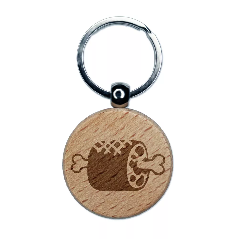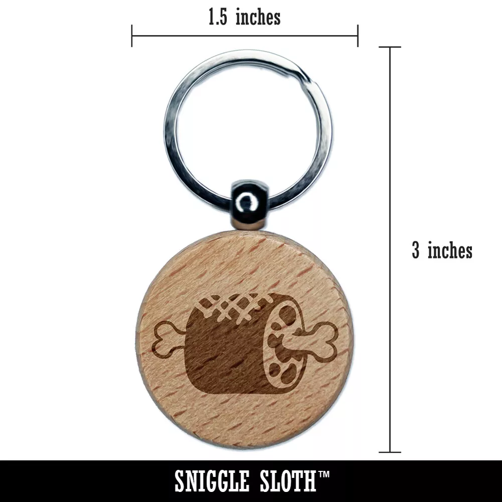 Grilled Barbecue Meat Haunch on Bone Engraved Wood Round Keychain Tag Charm