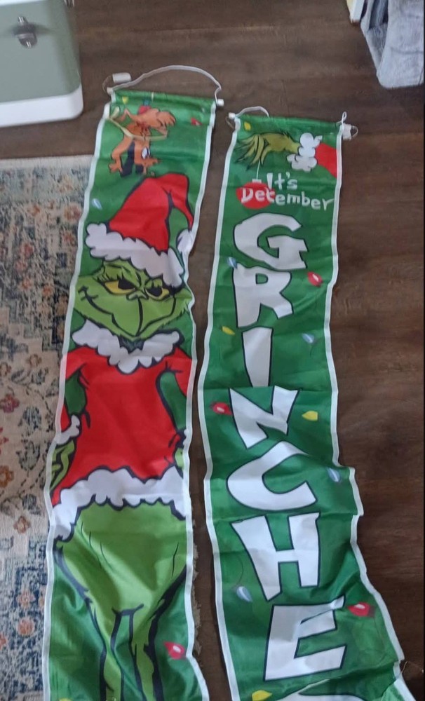 Calling all resellers. Lot of 50 packs. 2 banners per pack Get your Grinch on with these festive Christmas decorations! These light-up porch signs are perfect for adding some seasonal charm to your home. Each pack includes two multicolor banners made of durable fabric, featuring the beloved Grinch character and his faithful dog Max. The animated features of these banners will surely bring joy to all who pass by. Measuring 72 inches in height and 12 inches in length, these large rectangle-shaped banners are made to impress. Perfect for adults and any Grinch fan, these decorations will surely make your Christmas festivities extra special. Please reach out if you need a specific number other than the 50 packs. I can do as little as 5 packs and as many as 75
