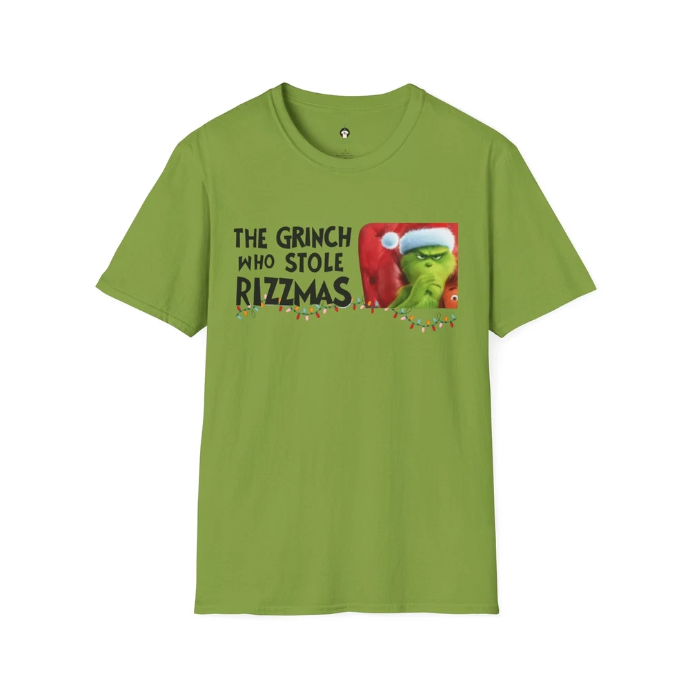 A grinch who stole rizzmas themed unisex tee, designed with black letters on a grinch green background. This funny slogan crypto meme coin tee exudes a playful and lighthearted vibe, perfect for those who enjoy unique and quirky designs. Ideal for crypto enthusiasts and meme lovers, this tee is perfect for celebrating Christmas and other festive occasions. Product features - Made from durable and smooth fabric - Classic fit with crew neckline for versatile styling - Pearlized tear-away label for comfort - Ethically grown and harvested US cotton - Available in various fabric blends for different color options Care instructions - Do not dryclean - Machine wash: warm (max 40C or 105F) - Do not bleach - Tumble dry: low heat - Iron, steam or dry: low heat EU representative : You Enjoy My Stuff / Christy Peek, 108 Joseph Dr, Senatobia, MS, 38668, US Product information : Gildan 64000, 2 year warranty in EU and Northern Ireland as per Directive 1999/44/EC Warnings, Hazard : For adults, Made in Bangladesh Care instructions : Machine wash: warm (max 40C or 105F), Do not bleach, Tumble dry: low heat, Iron, steam or dry: low heat, Do not dryclean