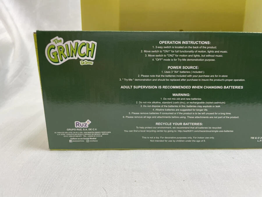 Merry Grinchmas Grinch Christmas Animated FIREPLACE Musical Lighted Table Piece NEW 2024 Merry Grinchmas The Grinch - Dr. Seuss Animated Musical Light Up Table Display New for 2024 By Ruz Plays the Classic Holiday Melody from The Grinch while the Christmas Tree spins, The flame in the fireplace lights up and the string of lights, lights up LED Illumination Stands 10" tall Battery Operated (3 AA) batteries included Indoor Use Only New Mint condition. This set is too cute!!! Ages 8 and up Please email me with any questions. I will respond back quickly. I describe item conditions to the best of my ability and will always point out any flaws or defects that I am aware of. I am an EBay Seller with 100% Positive Feedback! Thank you. Bid with Confidence! See my other listings for more great items! Because I have had a slew of non paying and very slow paying bidders lately I will require payment within 2 days of the end of auction. However, if you need a different arrangement I will be more than happy to work with you, just let me know. INTERNATIONAL BUYERS ARE RESPONSIBLE FOR ALL CUSTOMS CHARGES, PORT CHARGES OR ANY TAXES DUE UPON RECEIPT OF THEIR PACKAGE. All my shipping charges include delivery confirmation. International shipping will be at actual cost. Thank you for bidding on my auctions. Your business is very much appreciated! txzj pxzj293 txzj-11 txzj44 txzj115