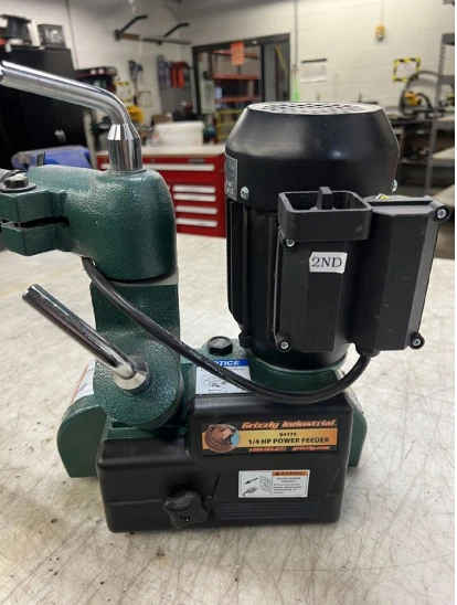1. Power Feeder: The power feeder is mainly used for production, ripping and milling, designed to streamline and enhance your workflow. This power feeder offers numerous features and specifications to match various applications and budgets. Designed to make feeding longer and wider stock easier and more efficient. The G4176 1/4 HP Power Feeder is for those who want to increase production, upgrade, or add on another stock feeder. The G4176 has the option to feed a work piece at six different feed rates: 20, 23, 33, and 43 feet per minute. a. Features: i. Forward/reverse feed ii. Multiple feed speeds iii. X-, Y-, Z-axis adjustment iv. Rollers are spring tensioned. v. Heavy-duty gear reduction with hardened gears vi. Universal positioning with handle locks b. Specifications : i. Motor: 1/4 HP, 120V, single-phase, 2.5A ii. Feed speeds: 20, 26, 33, 43 FPM iii. Rotation: Forward and reverse iv. Maximum height of rollers: 6" v. Minimum workpiece length: 5" vi. Vertical travel: 6-1/2" vii. Horizontal travel: 10" viii. Swing: 360° ix. Rollers: (3) synthetic rubber, 1-3/16" wide x 3-1/8" dia. x. Roller suspension: 3/4" xi. Overall dimensions: 34" W x 13" D x 24" H xii. Approximate shipping weight: 79 lbs.