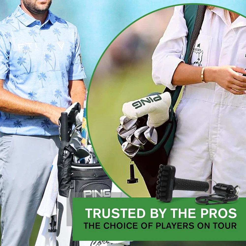 Grooveit Mini Golf Brush The Small MiniG 'Dry Scrubber' Features A Black Product Details Product Dimensions: 3.56 x 7.96 x 1.01 inches Item Weight: 1.76 ounces Department: unisex-adult Manufacturer: Tier 1 Cleaning Tools LLC Country of Origin: China Item model number: GROOVEIT MINI G BRUSH Batteries required: No Included Components: mini G dry golf club cleaning brush Import: Imported TRUSTED BY PROS & AMATEURS - The Grooveit MiniG Golf Club Cleaning Brush, a favorite among professionals and recreational players, is your mini scrubber for pristine clubs. It's the essential golf club cleaning kit accessory, combining efficiency, compactness, and the perfect addition to your golf accessories bag. CONVENIENT MAGNETIC ATTACHMENT - Our heavy-duty magnet and industrial-grade S-clip ensure quick access to your mini scrubber brush, a vital component of your golf club cleaning kit and golf club accessories. Reliable and securely attached to your golf bag, it's your go-to golf groove cleaner. EFFICIENT CLUBHEAD CLEANING - The MiniG's compact nylon-bristle brush head ensures maximum cleaning power for your golf clubs. Spend less time scrubbing and more time perfecting your swing. Keep your clubs in top shape for precision and cleaner shots, all with this mini scrubber brush. VETERAN-OWNED & OPERATED - Grooveit takes immense pride in being a veteran-owned and operated company, rooted in Oklahoma's golfing culture. By choosing our product, you support passionate golfers just like you. Join the Grooveit Brush family today and align yourself with the best in the game.