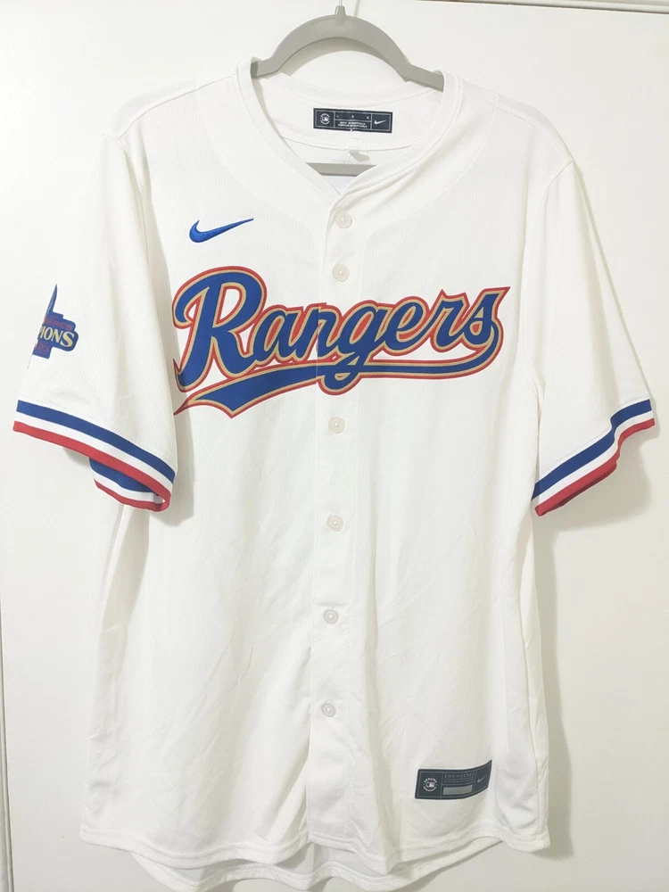 UPC:Does not applyBrand:NikeTeam:Texas Rangersgtin13:Does not applyPre & Post Season:World SeriesProduct:JerseyLeague:Major League (MLB)Sport:BaseballSize:LOfficially Licensed:Yes