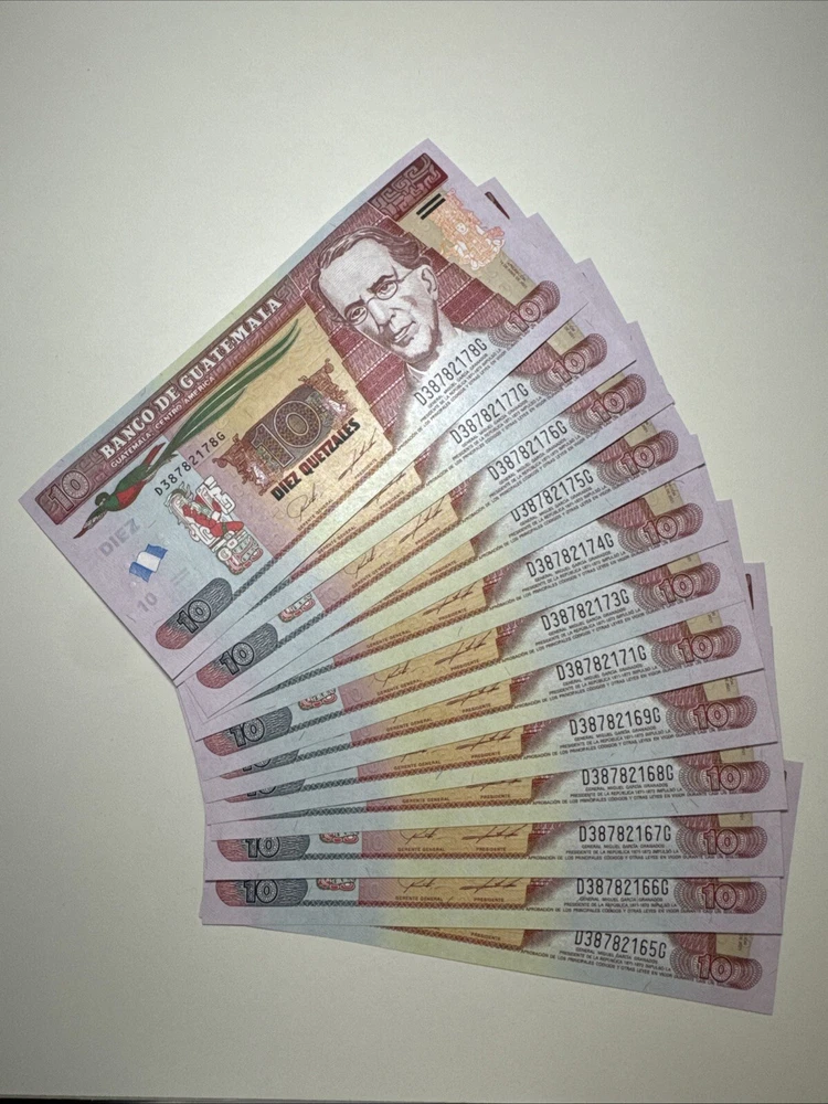 π¬πΉ Guatemala π¬πΉ 10 Quetzales Banknote - UNC Specifics: Size β 156x68mm Printer β Giesecke+Devrient, Munich, Germany Date β 14 April 2021 Issuing bank β Banco de Guatemala Donβt miss your chance to snag these new, beautiful banknotes at a great price! These notes are Guatemalan 10 Quetzal notes from 2021. They are in brand new uncirculated condition and can be a perfect addition to your collection or a gift for your fellow collectors. You will receive one (1) banknote unless if you are ordering a larger quantity. Free untracked domestic shipping in US through standard USPS letter. Thanks for looking and have a great day! π