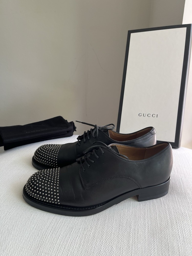 Classic Gucci black studded oxford shoes. Perfect for any occasion, these shoes combine luxury and comfort effortlessly. Very good conditions with dust bag and boxes. Size 36, Made in Italy.