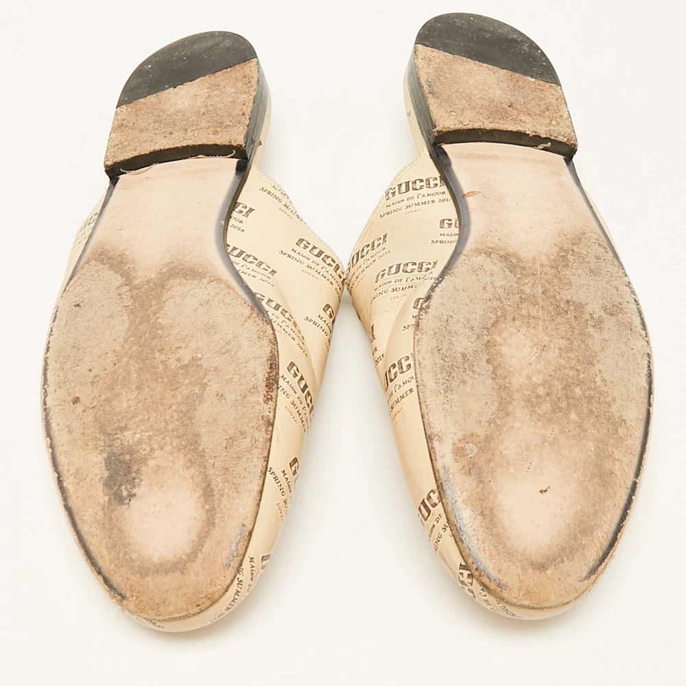 A perfect blend of luxury, style, and comfort, these designer mules are made using quality materials and frame your feet in the most elegant way. They can be paired with a host of outfits from your wardrobe.Certified by The Luxury Closet - This item has gone through a detailed authentication process overseen by our experts. We offer a lifetime guarantee of authenticity on all our items. Import duties, taxes and charges are not included in the item price. These charges are the buyers responsibility. Please check with your country’s customs office to determine what these additional cost will be prior to buying. Our eBay Store About Us Contact Us Add to Favorite Sellers Gucci Beige Logo Stamp Leather Princetown Flat Mules Size 36 $207.9 A perfect blend of luxury, style, and comfort, these designer mules are made using quality materials and frame your feet in the most elegant way. They can be paired with a host of outfits from your wardrobe. Product Details Brand Color Beige Dimensions Material Leather Size 36 Outsole Width 8 cm Outsole Length 25 cm Heel Height Includes The Luxury Closet Packaging Certified by The Luxury Closet This item has gone through a detailed authentication process overseen by our experts. We offer a lifetime guarantee of authenticity on all our items. How We Check The in-house team of experts at The Luxury Closet is highly trained to verify the authenticity and the condition of the luxury products. They ensure that only 100% authentic items are put on sale.The evaluation process is unique with its own mix of assessment criteria and differs according to the category. Each item is evaluated based on the following combination of hallmarks, hardware, stitching, symmetry, material, craftsmanship, stamping, codes, hologram stickers, and packaging. Our authenticators also check if the items have been modified or amended (e.g., aftermarket diamonds, replaced batteries, repaired bags, etc.) International Buyers Import duties, taxes and charges are not included in the item price. These charges are the buyers responsibility. Please check with your country’s customs office to determine what these additional cost will be prior to buying.