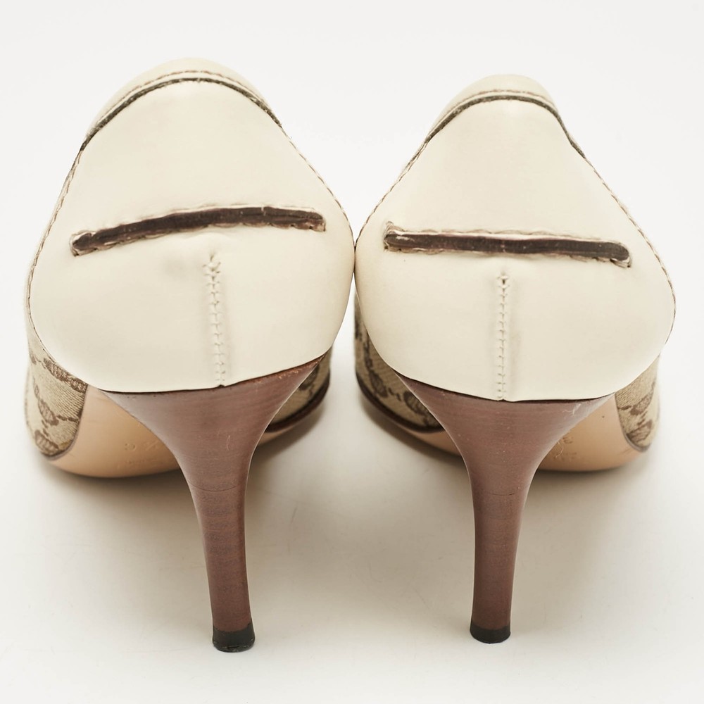 Make a statement with these designer pumps for women. Impeccably crafted, these chic heels offer both fashion and comfort, elevating your look with each graceful step.Certified by The Luxury Closet - This item has gone through a detailed authentication process overseen by our experts. We offer a lifetime guarantee of authenticity on all our items. Import duties, taxes and charges are not included in the item price. These charges are the buyers responsibility. Please check with your country’s customs office to determine what these additional cost will be prior to buying. Our eBay Store About Us Contact Us Add to Favorite Sellers Gucci Brown/Cream Monogram Canvas and Leather Loafer Pumps Size 36.5 $254.1 Make a statement with these designer pumps for women. Impeccably crafted, these chic heels offer both fashion and comfort, elevating your look with each graceful step. Product Details Brand Color Brown Dimensions Material Canvas, Leather Size 36.5 Outsole Width Outsole Length Heel Height Includes The Luxury Closet Packaging Certified by The Luxury Closet This item has gone through a detailed authentication process overseen by our experts. We offer a lifetime guarantee of authenticity on all our items. How We Check The in-house team of experts at The Luxury Closet is highly trained to verify the authenticity and the condition of the luxury products. They ensure that only 100% authentic items are put on sale.The evaluation process is unique with its own mix of assessment criteria and differs according to the category. Each item is evaluated based on the following combination of hallmarks, hardware, stitching, symmetry, material, craftsmanship, stamping, codes, hologram stickers, and packaging. Our authenticators also check if the items have been modified or amended (e.g., aftermarket diamonds, replaced batteries, repaired bags, etc.) International Buyers Import duties, taxes and charges are not included in the item price. These charges are the buyers responsibility. Please check with your country’s customs office to determine what these additional cost will be prior to buying.