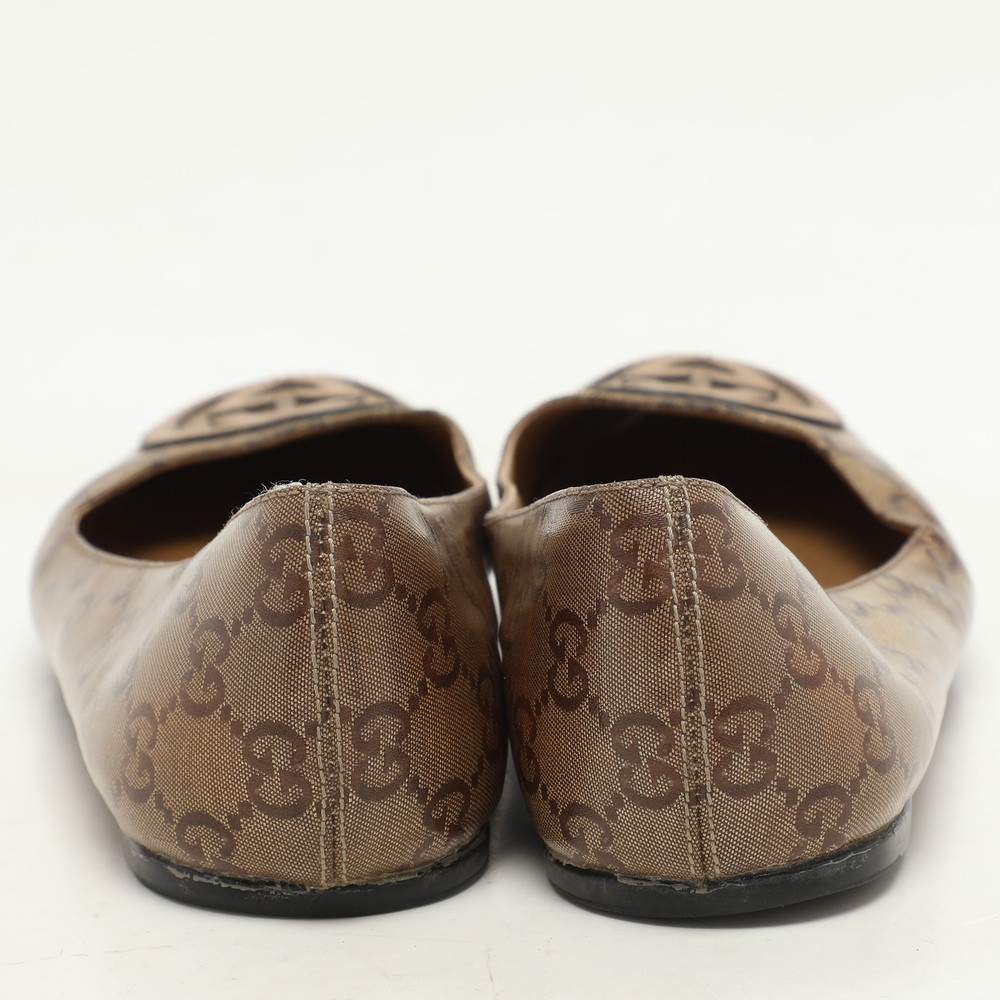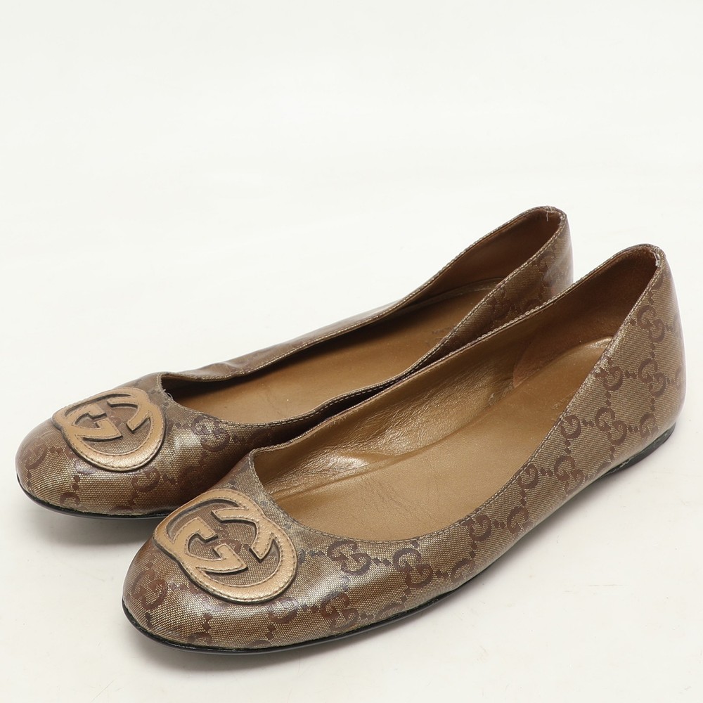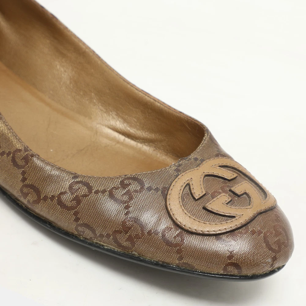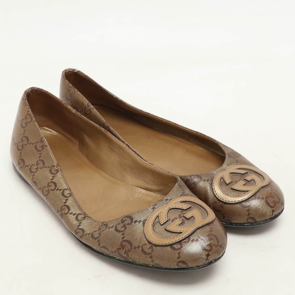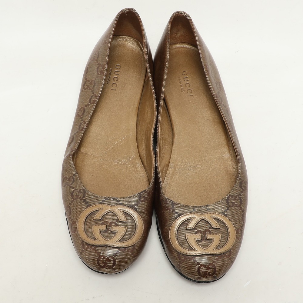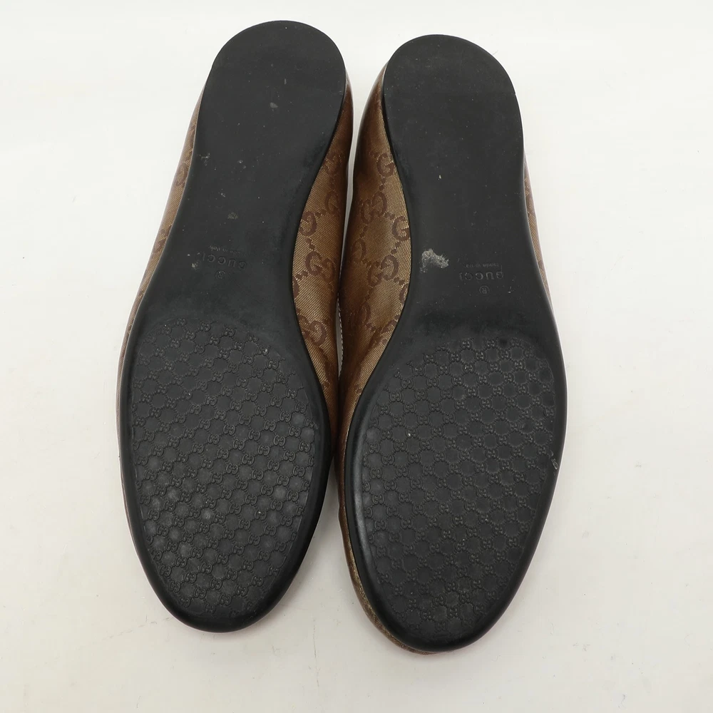These ballet flats by Gucci are both durable and chic, crafted from crystal coated GG canvas in a versatile brown tone. Finished with a petite bow and logo charm, they’re a perfect balance of practical luxury and feminine flair.Certified by The Luxury Closet - This item has gone through a detailed authentication process overseen by our experts. We offer a lifetime guarantee of authenticity on all our items. Import duties, taxes and charges are not included in the item price. These charges are the buyers responsibility. Please check with your country’s customs office to determine what these additional cost will be prior to buying. Our eBay Store About Us Contact Us Add to Favorite Sellers Gucci Brown GG Crystal Coated Canvas Ballet Flats Size 37 $287.1 These ballet flats by Gucci are both durable and chic, crafted from crystal coated GG canvas in a versatile brown tone. Finished with a petite bow and logo charm, they’re a perfect balance of practical luxury and feminine flair. Product Details Brand Color Brown Dimensions Material Coated Canvas Size 37 Outsole Width Outsole Length Heel Height Includes Certified by The Luxury Closet This item has gone through a detailed authentication process overseen by our experts. We offer a lifetime guarantee of authenticity on all our items. How We Check The in-house team of experts at The Luxury Closet is highly trained to verify the authenticity and the condition of the luxury products. They ensure that only 100% authentic items are put on sale.The evaluation process is unique with its own mix of assessment criteria and differs according to the category. Each item is evaluated based on the following combination of hallmarks, hardware, stitching, symmetry, material, craftsmanship, stamping, codes, hologram stickers, and packaging. Our authenticators also check if the items have been modified or amended (e.g., aftermarket diamonds, replaced batteries, repaired bags, etc.) International Buyers Import duties, taxes and charges are not included in the item price. These charges are the buyers responsibility. Please check with your country’s customs office to determine what these additional cost will be prior to buying.