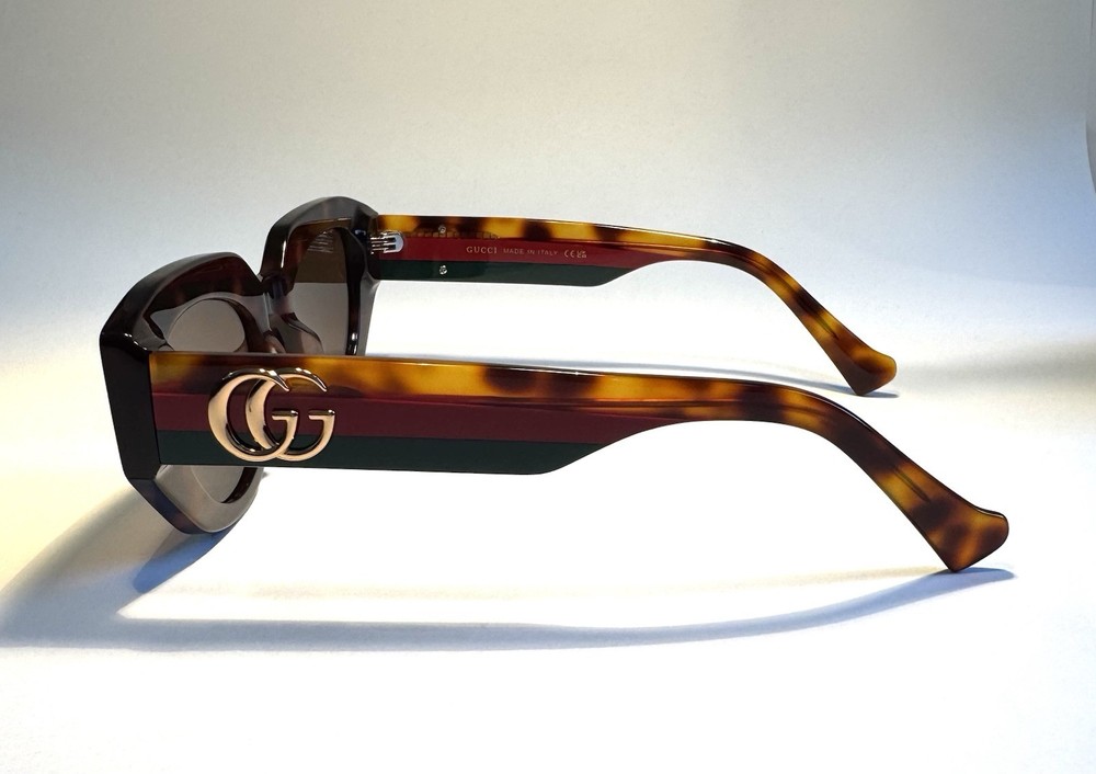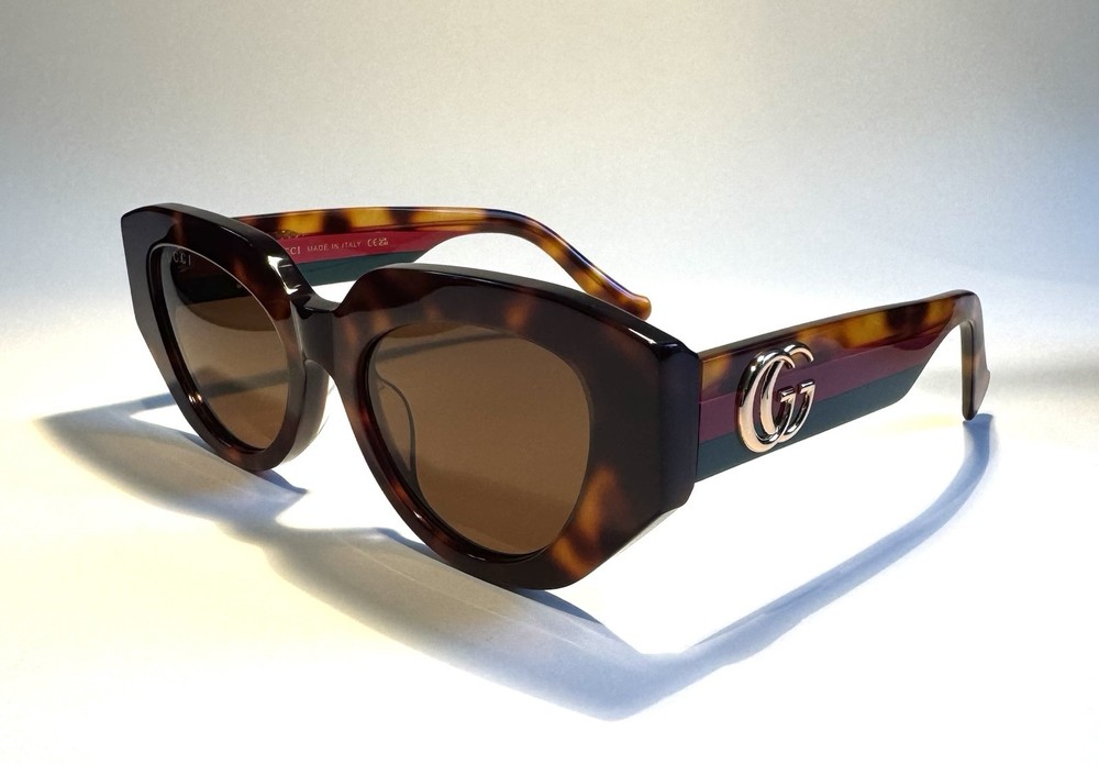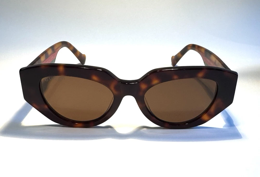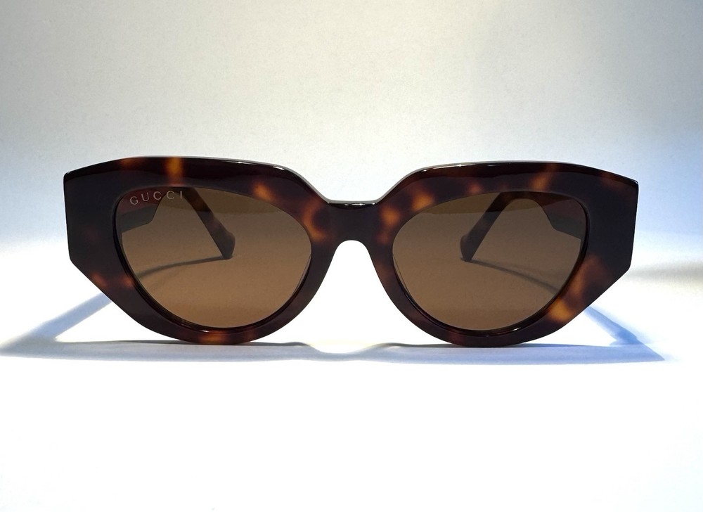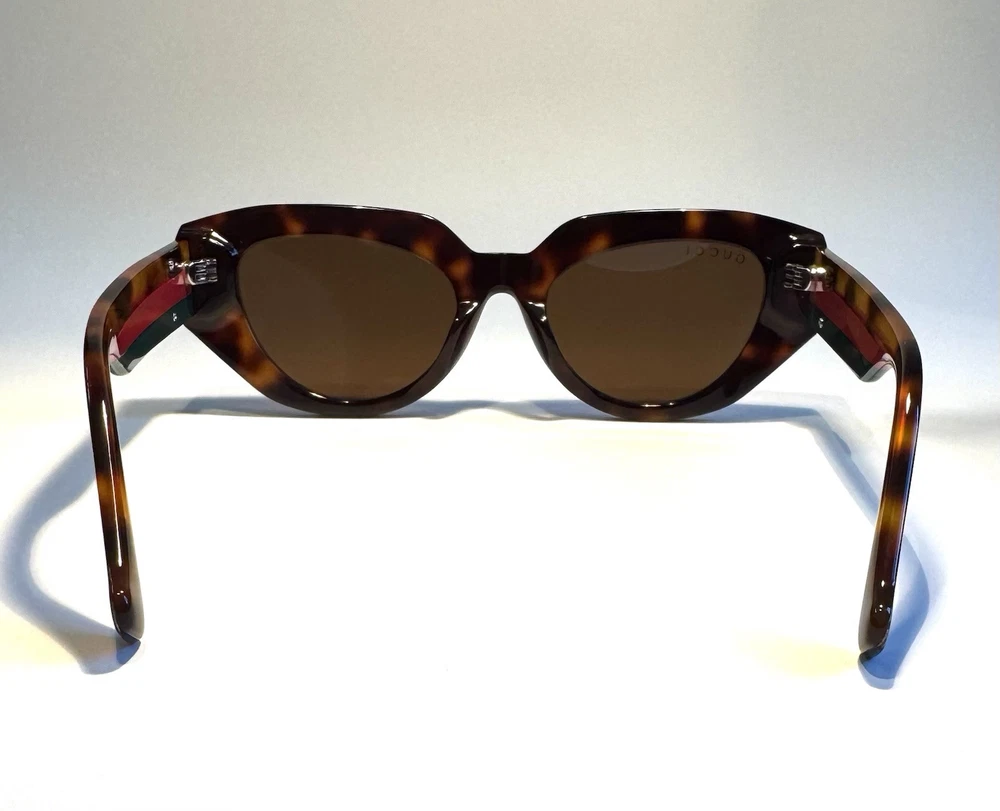 Gucci Cat Eye Brown Lenses Polished Tortoise with Gucci Colors Acetate Frame MADE IN ITALY Specifications: Style: Cat Eye Model: GG1421S Color Number: 002FB Lens Width: 52 mm Temple Length: 145 mm Frame Material: Acetate Frame Color: Tortoise with Gucci Colors Lens Color: Brown The package includes: Sunglasses, Case, Cleaning Cloth. Condition: Each pair of sunglasses undergoes an extensive in-house inspection and cleaning process. The sunglasses are guaranteed to function as intended. We offer a 100% satisfaction guarantee. Shipping Information: Our items ship from California, USA. We will ship your item within 24 hours of receiving payment, excluding weekends and holidays. For any inquiries via email or messages, please allow us 24 hours to respond. Shipping Address: To protect our customers from fraudulent orders, we only ship to confirmed addresses. Please ensure your address is correct before placing your order. The recipient's name and address on eBay must match. We cannot make changes after your order has been placed. We do not ship to forwarding services, hotels, motels, or any unconfirmed addresses. No exceptions. Customer Service: We offer a 30-day money-back guarantee. If you encounter any issues, please contact us through the eBay system and select "Others" as the topic. We will provide you with the return information. 100% Satisfaction Guarantee: Thank you for your purchase!