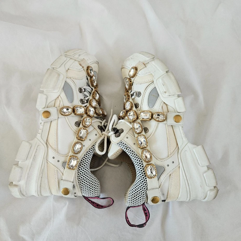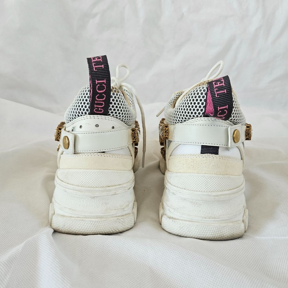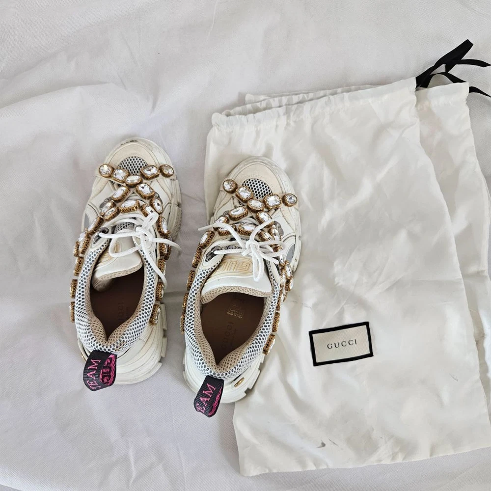bopf Visit thebusinessofprelovedfashion store to see all the catalogue ABOUT US CUSTOMER FEEDBACK CONTACT US Gucci Cream Leather & Suede Flashtrek Lace Up Sneakers, Size 39 check_circle Handling Time: 4 days check_circle Additional custom duties may apply check_circle 100% Authentic Gucci Cream Leather and Suede Flashtrek Lace Up Sneakers Attributes Material: Fabric, rubber, leather, suede Color: Cream Condition: Gently used; scuffs on exterior Size: 39 Inclusions: dust bag About This Item Department: women Style: Sunglasses Upper Material: Fabric Brand: Gucci US Shoe Size: 39 Color: Cream How we list items 1. METICULOUS INHOUSE AUTHENTICATION PROCESS Our in-house luxury consignment experts offer a combined experience of over 8 years in the fashion resale industry enabling them to carefully inspect all items listed online to ensure they are authentic 2. VERIFY AUTHENTICITY USING ENTRUPY AI TOOL We use Entrupy: The world's first and only on-demand authentication solution for high-value goods as an additional layer of authenticity ventication. 3. THIRD PARTY PROFESSIONAL AUTHENTICATION SERVICES We use Entrupy: The world's first and only on-demand authentication solution for high-value goods as an additional layer of authenticity ventication. Customers with frequent return orders will incur a restocking fee of 30$ per order. This policy helps cover administrative costs es thoughtful purchases. About the Seller Shipping Policy Description Payment Policy Description Return Policy Description Welcome to The Business of Preloved Fashion (BOPF) – your trusted source for authentic, preloved luxury fashion. Founded in Dubai in 2021 by Hadiza Ibekwe, who brings over 10 years of experience in luxury resale, BOPF is committed to making luxury fashion more accessible and sustainable. Why Shop With Us? Authenticity Guaranteed: Every item is carefully inspected and authenticated by our experts. New Treasures Weekly: Our collection is updated weekly with carefully curated preloved designer pieces, including preloved bags, clothing, shoes , accessories and jewelry. Luxury for Less: Find high-end designer items at a fraction of their original prices. Quick Shipping: Enjoy fast, reliable shipping with every purchase. Sustainable Fashion: Join us in promoting a more sustainable fashion future by choosing preloved. Have questions? Reach out via eBay messaging – we're readily available! • We will use DHL courier for safe and fast delivery. • Import duties, taxes and charges are the buyer's responsibility. Please check with your country's customs office to determine what these additional costs will be prior to bidding or buying. • We accept only online payment method. • We accept payment by PayPal and Credit / Debit cards entered on eBay only. Customers with frequent return orders will incur a restocking fee of 30$ per order. This policy helps cover administrative costs and encourage thoughtful purchases.