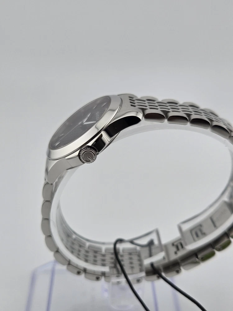 Gucci Women’s G-Timeless Stainless Steel Black Dial Watch – YA126502 ($790 MSRP) With Original Box and Tags! This watch is a Shelf Pull from one of the Major Department Stores. Watch has micro scratches on the watch case/band, visible under direct light. The Gucci Women’s G-Timeless Stainless Steel Black Dial Watch – YA126502 embodies the essence of luxury and sophistication. It features a sleek stainless steel case complemented by a matching stainless steel link bracelet, offering both durability and elegance. The fixed stainless steel bezel frames a distinctive black diamond-pattern dial with the iconic Gucci 'G', adorned with luminous silver-tone hands and index hour markers, ensuring both style and readability. Minute markers around the outer rim add to the precise timekeeping of this exquisite timepiece. This analog watch is powered by a reliable quartz movement, providing accurate timekeeping. A scratch-resistant sapphire crystal protects the dial, maintaining its pristine appearance over time. The date display is discreetly positioned at the 4 o'clock mark, adding a practical function without compromising the watch's aesthetic. The textured steel crown and stainless steel case back complete the sophisticated design. With a case diameter of 27 mm and a case thickness of 7 mm, it is a perfect size for a woman's wrist, offering a refined yet substantial presence. Designed for both style and functionality, the watch features a hidden deployment clasp that ensures a secure and comfortable fit. Water-resistant up to 30 meters (100 feet), this timepiece can withstand everyday splashes and brief immersion in water. The Gucci Women’s G-Timeless Stainless Steel Black Dial Watch is a luxury dress watch that seamlessly combines timeless elegance with modern design elements, making it a perfect accessory for any occasion. Features Stainless steel case with a stainless steel link bracelet. Fixed stainless steel bezel. Black diamond-pattern with black Gucci 'G' dial with luminous silver-tone hands and index hour markers. Minute markers around the outer rim. Dial Type: analog. Date display at the 4 o'clock position. Quartz movement. Scratch resistant sapphire crystal. Textured steel crown. S tainless steel case back. Case diameter: 27 mm. Case thickness: 7 mm. Band width: 14 mm. Hidden deployment clasp. Water resistant at 30 meters / 100 feet. Functions: hours, minutes, seconds, date. Fast and Free Shipping You're already purchasing the item. Why pay additional for shipping, especially slow shipping? We get your order shipped out within 1-business day and delivered to your doorstep as quickly as possible. Competitive Pricing With our dynamic pricing model, our prices are always competitive. Our prices are some of the lowest that you will find on the internet. Rest assured that you're getting a good deal when purchasing with us. 30-day Money Back Guarantee We are committed to making sure that you leave this transaction satisfied. If you're unhappy with the product for any reason, you may return it back for your money-back or a replacement within 30 days. No questions asked!
