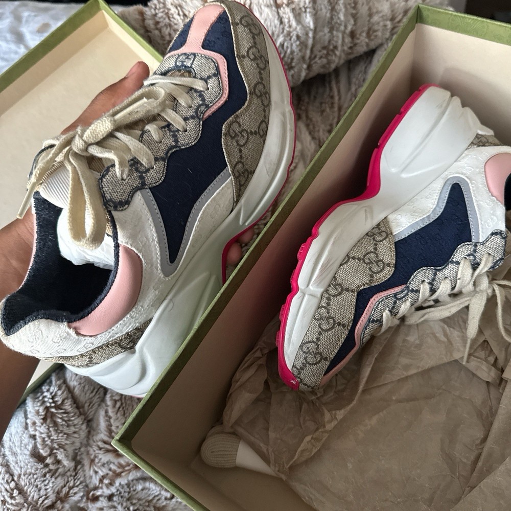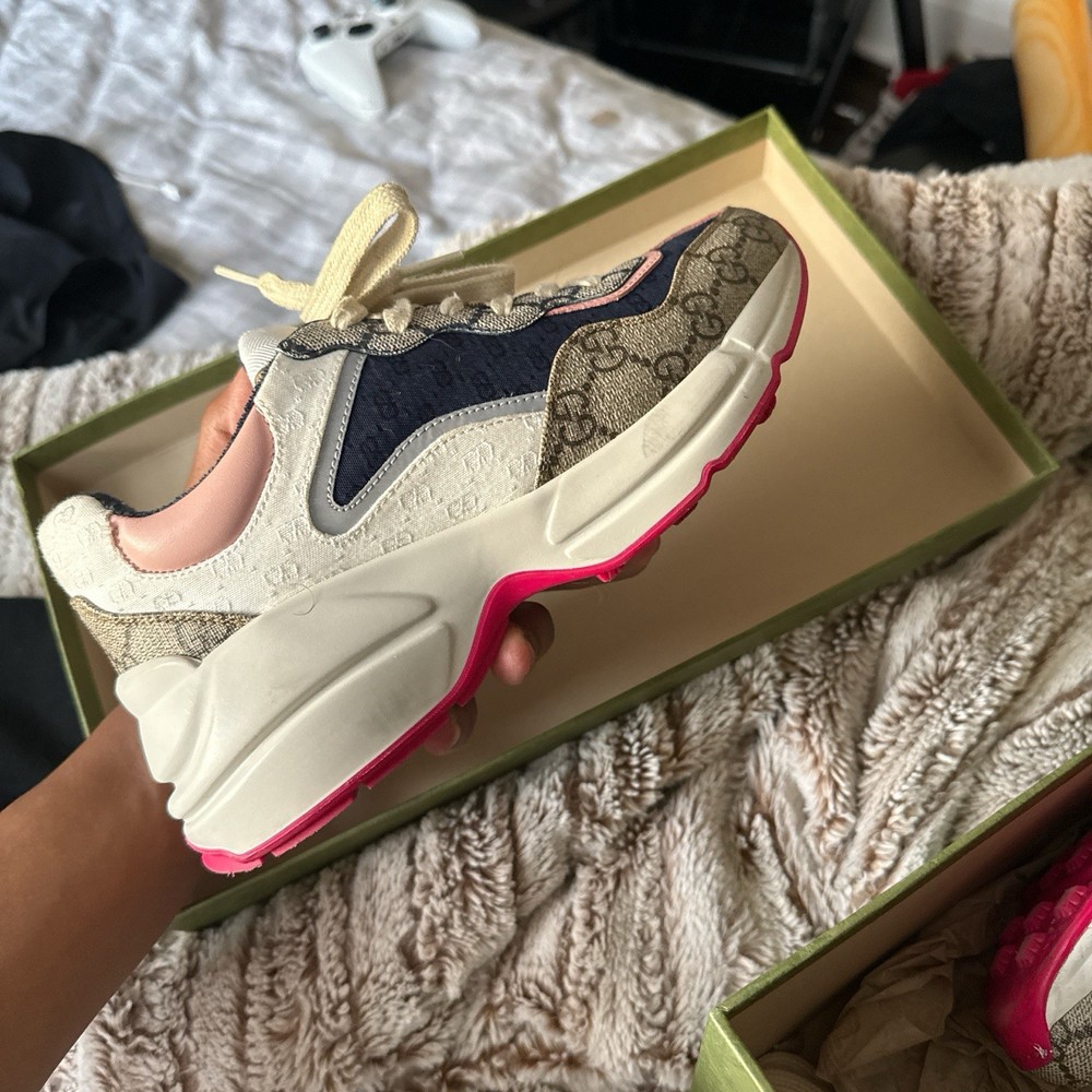 These Gucci sneakers are a dream! The soft pink soles add such a chic pop, and they’re super comfortable for all-day wear. The size 36 fits true, and while they show slight signs of love, they’re still in great shape—perfect for elevating any casual or dressed-up look. A stylish steal for any fashion lover!