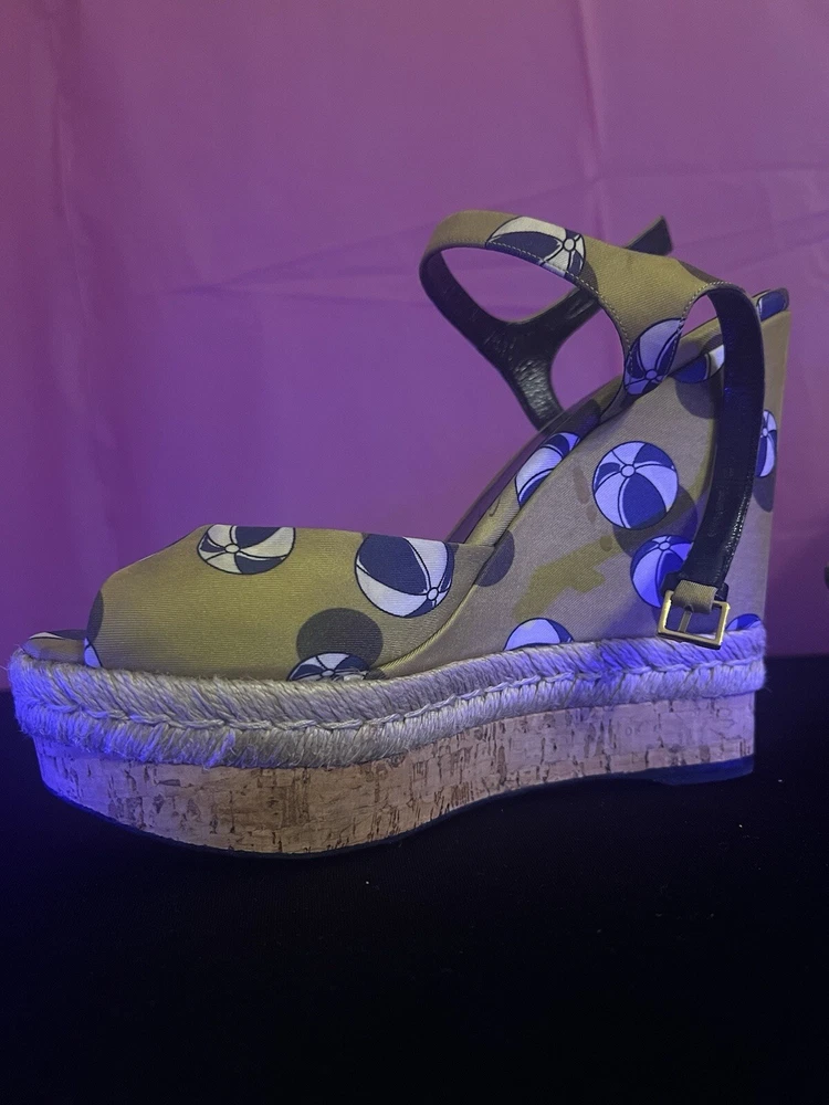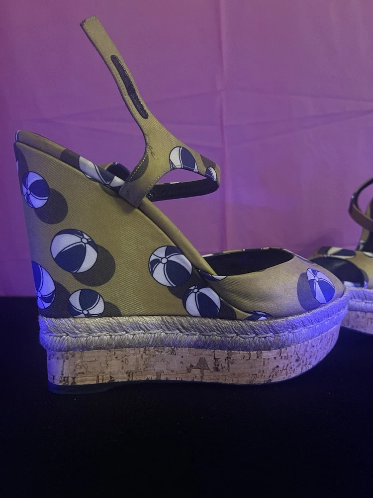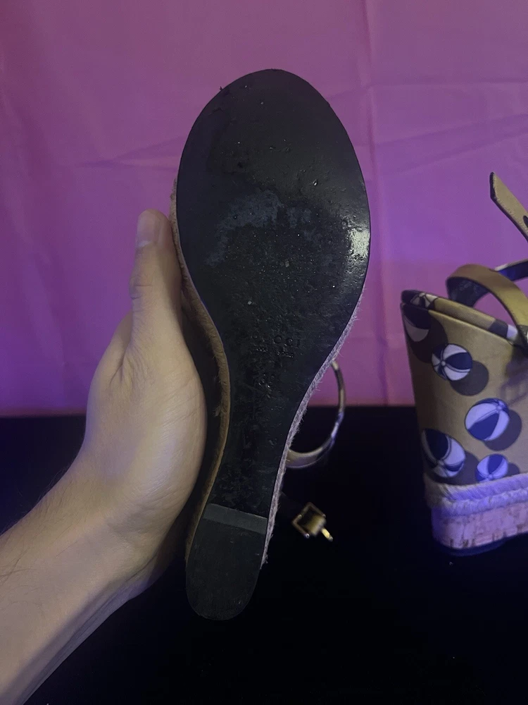 $ 27.46Aldo Black Gold Strappy Wedge Sandals Cork Leather Size 8.5