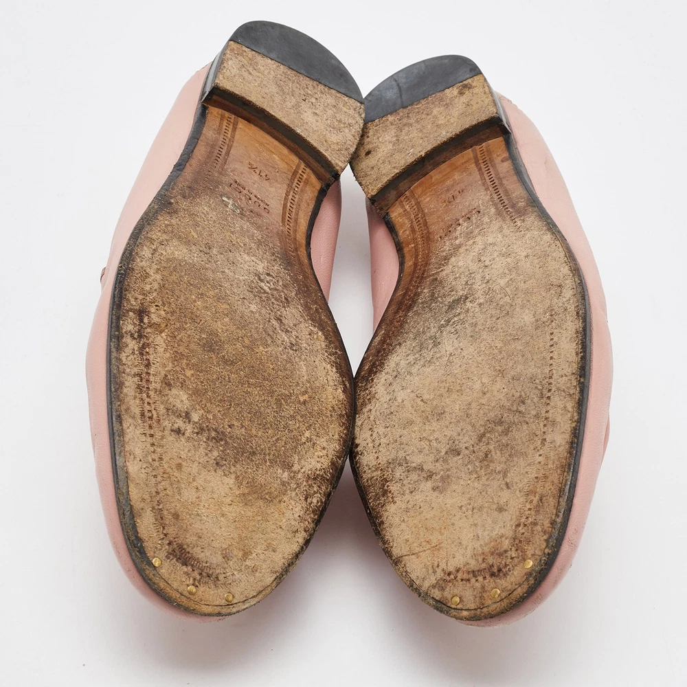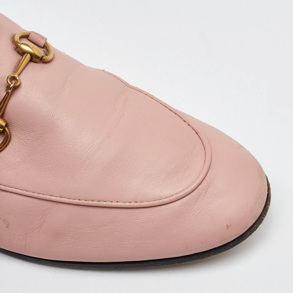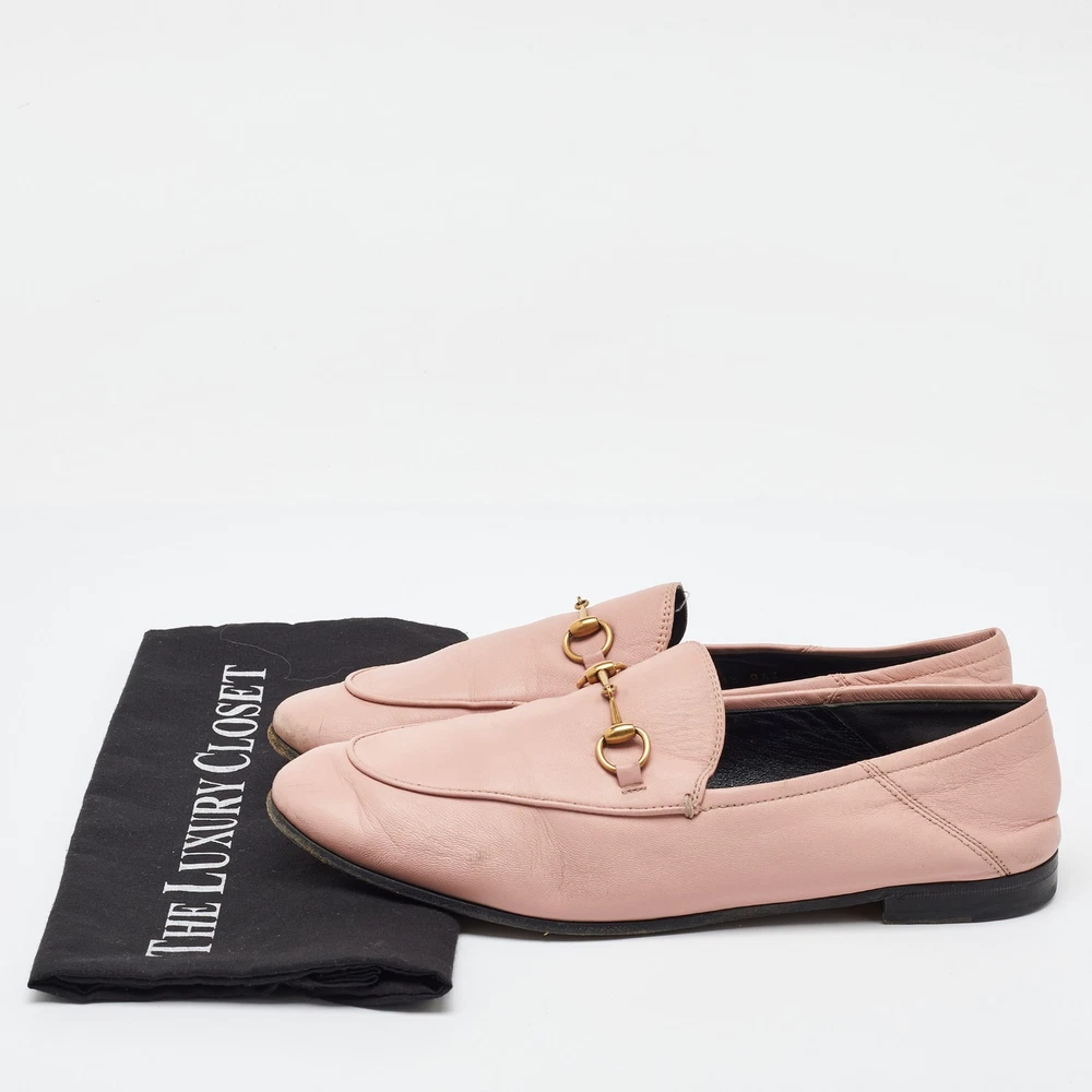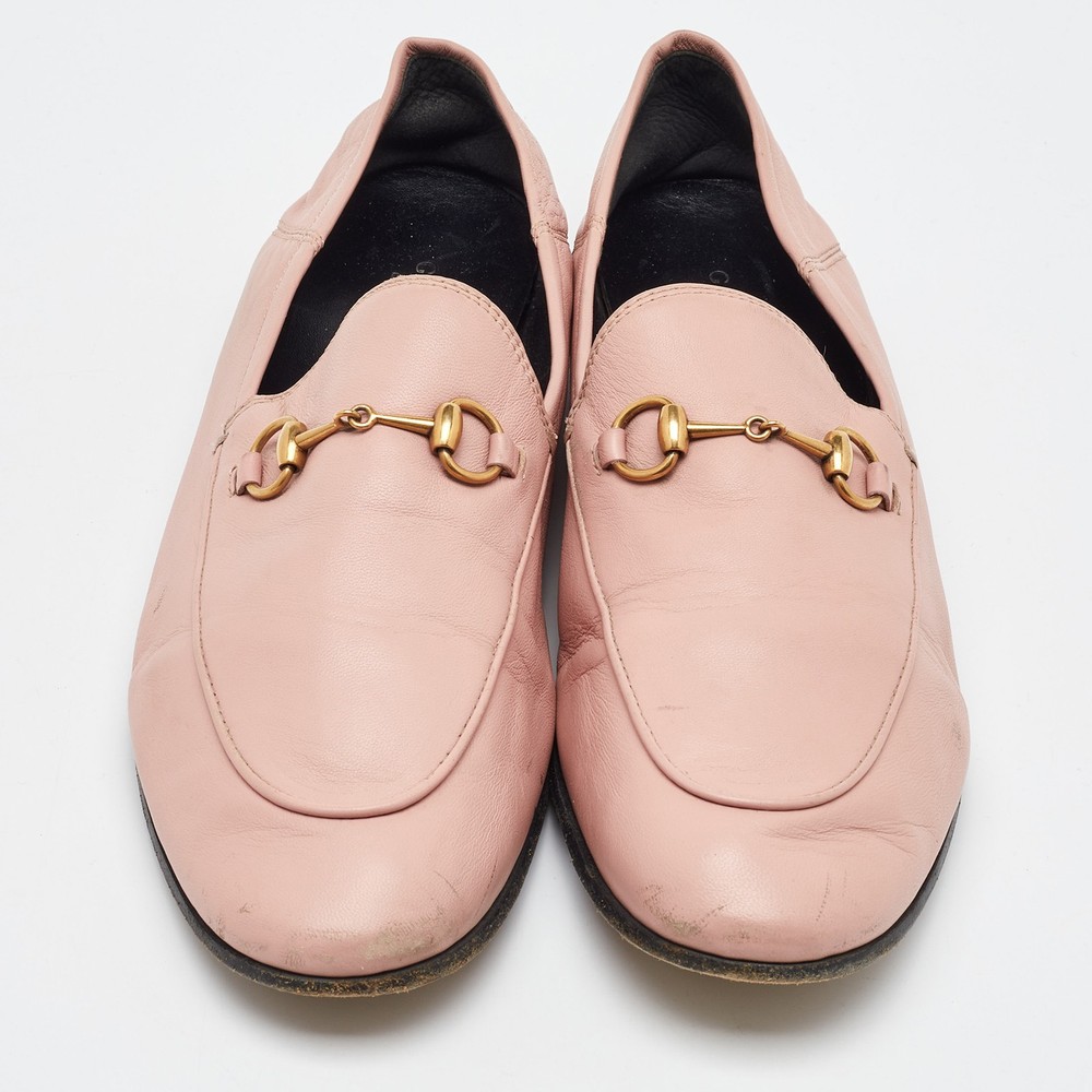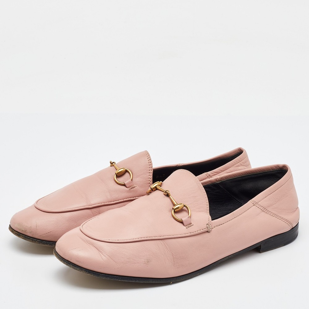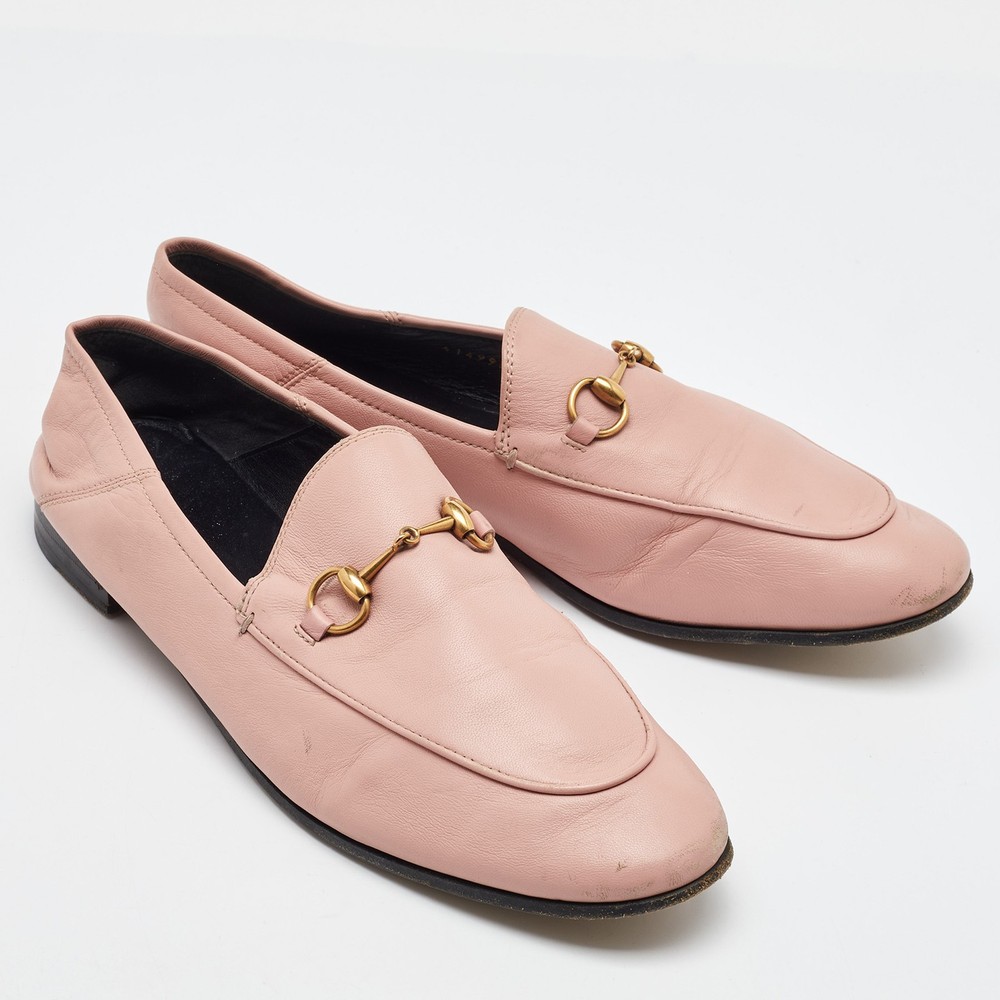 The Gucci loafers are a luxurious fusion of classic design and contemporary elegance. Featuring the iconic Horsebit detail, these loafers are crafted from soft, premium leather in a delicate light pink hue, perfect for adding a touch of sophistication to any outfit. With their sleek, slip on style, they offer both comfort and timeless appeal, making them a standout piece in any wardrobe.Certified by The Luxury Closet - This item has gone through a detailed authentication process overseen by our experts. We offer a lifetime guarantee of authenticity on all our items. Import duties, taxes and charges are not included in the item price. These charges are the buyers responsibility. Please check with your country’s customs office to determine what these additional cost will be prior to buying. Our eBay Store About Us Contact Us Add to Favorite Sellers Gucci Light Pink Leather Jordaan Horsebit Loafers Size 41.5 $273.9 The Gucci loafers are a luxurious fusion of classic design and contemporary elegance. Featuring the iconic Horsebit detail, these loafers are crafted from soft, premium leather in a delicate light pink hue, perfect for adding a touch of sophistication to any outfit. With their sleek, slip on style, they offer both comfort and timeless appeal, making them a standout piece in any wardrobe. Product Details Brand Color Pink Dimensions Material Leather Size 41.5 Outsole Width 9 cm Outsole Length 27 cm Heel Height Includes The Luxury Closet Packaging Certified by The Luxury Closet This item has gone through a detailed authentication process overseen by our experts. We offer a lifetime guarantee of authenticity on all our items. How We Check The in-house team of experts at The Luxury Closet is highly trained to verify the authenticity and the condition of the luxury products. They ensure that only 100% authentic items are put on sale.The evaluation process is unique with its own mix of assessment criteria and differs according to the category. Each item is evaluated based on the following combination of hallmarks, hardware, stitching, symmetry, material, craftsmanship, stamping, codes, hologram stickers, and packaging. Our authenticators also check if the items have been modified or amended (e.g., aftermarket diamonds, replaced batteries, repaired bags, etc.) International Buyers Import duties, taxes and charges are not included in the item price. These charges are the buyers responsibility. Please check with your country’s customs office to determine what these additional cost will be prior to buying.