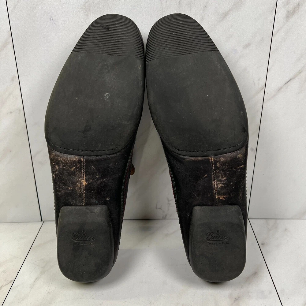 $ 112.47Gucci Black Embroidered Leather Horsebit Loafers Size 40.5 1953 Design