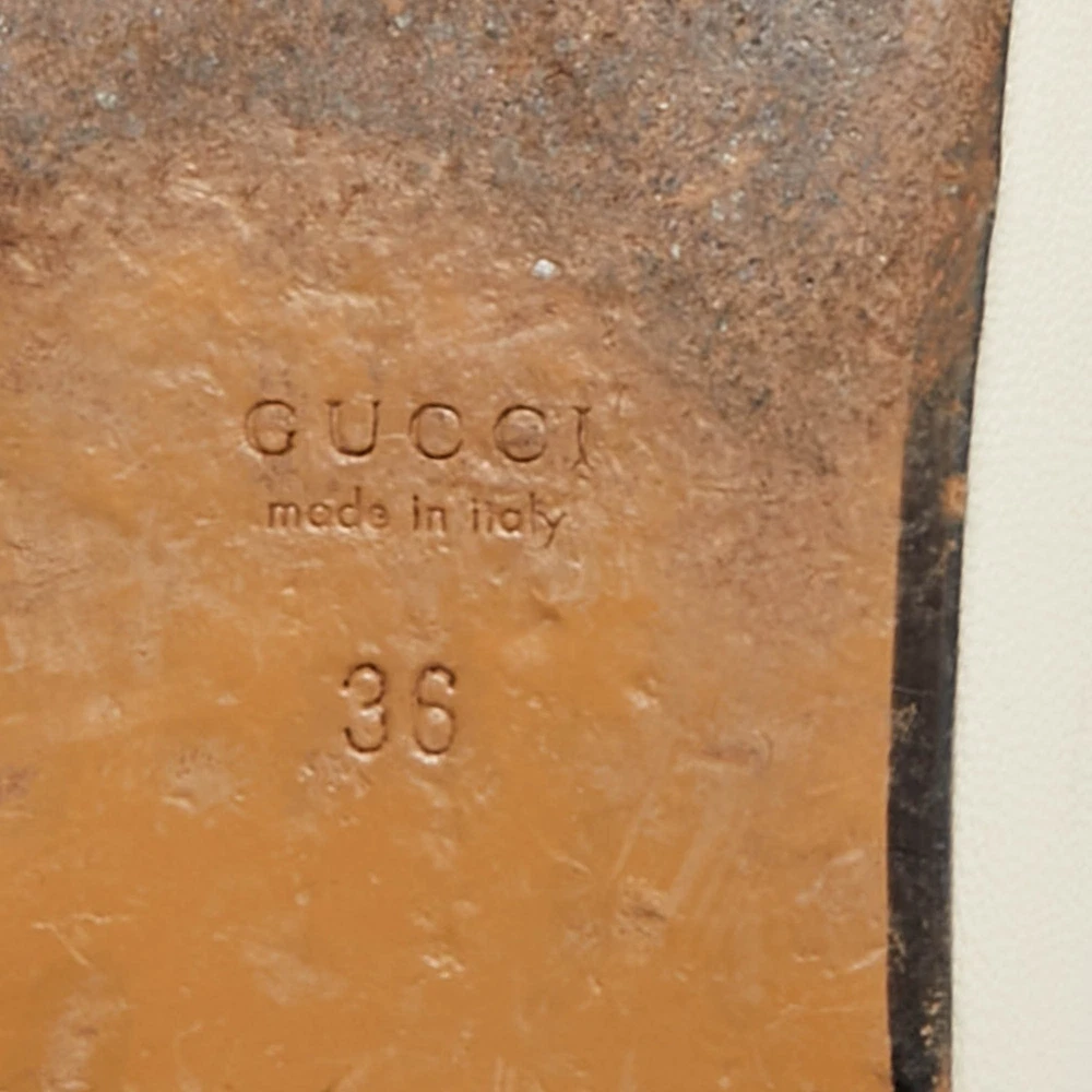 Let this comfortable pair be your first choice when youre out for a long day. These Gucci shoes have well sewn uppers beautifully set on durable soles.Certified by The Luxury Closet - This item has gone through a detailed authentication process overseen by our experts. We offer a lifetime guarantee of authenticity on all our items. Import duties, taxes and charges are not included in the item price. These charges are the buyers responsibility. Please check with your country’s customs office to determine what these additional cost will be prior to buying. Our eBay Store About Us Contact Us Add to Favorite Sellers Gucci Cream Leather Princetown Mules Size 36 $190.3 Let this comfortable pair be your first choice when youre out for a long day. These Gucci shoes have well sewn uppers beautifully set on durable soles. Product Details Brand Color Cream Dimensions Material Leather Size 36 Outsole Width 8 cm Outsole Length 25 cm Heel Height Includes The Luxury Closet Packaging Certified by The Luxury Closet This item has gone through a detailed authentication process overseen by our experts. We offer a lifetime guarantee of authenticity on all our items. How We Check The in-house team of experts at The Luxury Closet is highly trained to verify the authenticity and the condition of the luxury products. They ensure that only 100% authentic items are put on sale.The evaluation process is unique with its own mix of assessment criteria and differs according to the category. Each item is evaluated based on the following combination of hallmarks, hardware, stitching, symmetry, material, craftsmanship, stamping, codes, hologram stickers, and packaging. Our authenticators also check if the items have been modified or amended (e.g., aftermarket diamonds, replaced batteries, repaired bags, etc.) International Buyers Import duties, taxes and charges are not included in the item price. These charges are the buyers responsibility. Please check with your country’s customs office to determine what these additional cost will be prior to buying.
