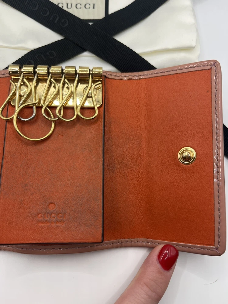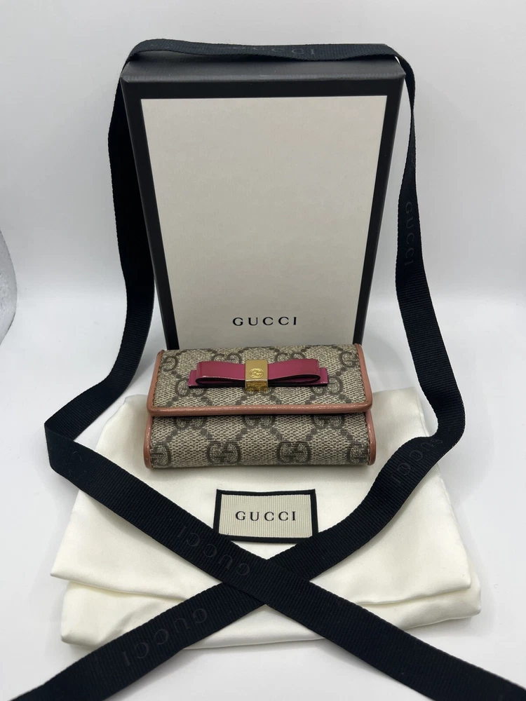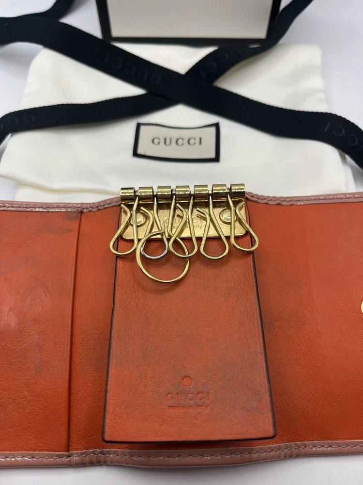 Gucci Trifold Key Case Holder 6 Hooks Supreme Ribbon. Full Set includes box, dust bag, and ribbon. Condition is Pre-owned. Shipped with USPS Ground Advantage.