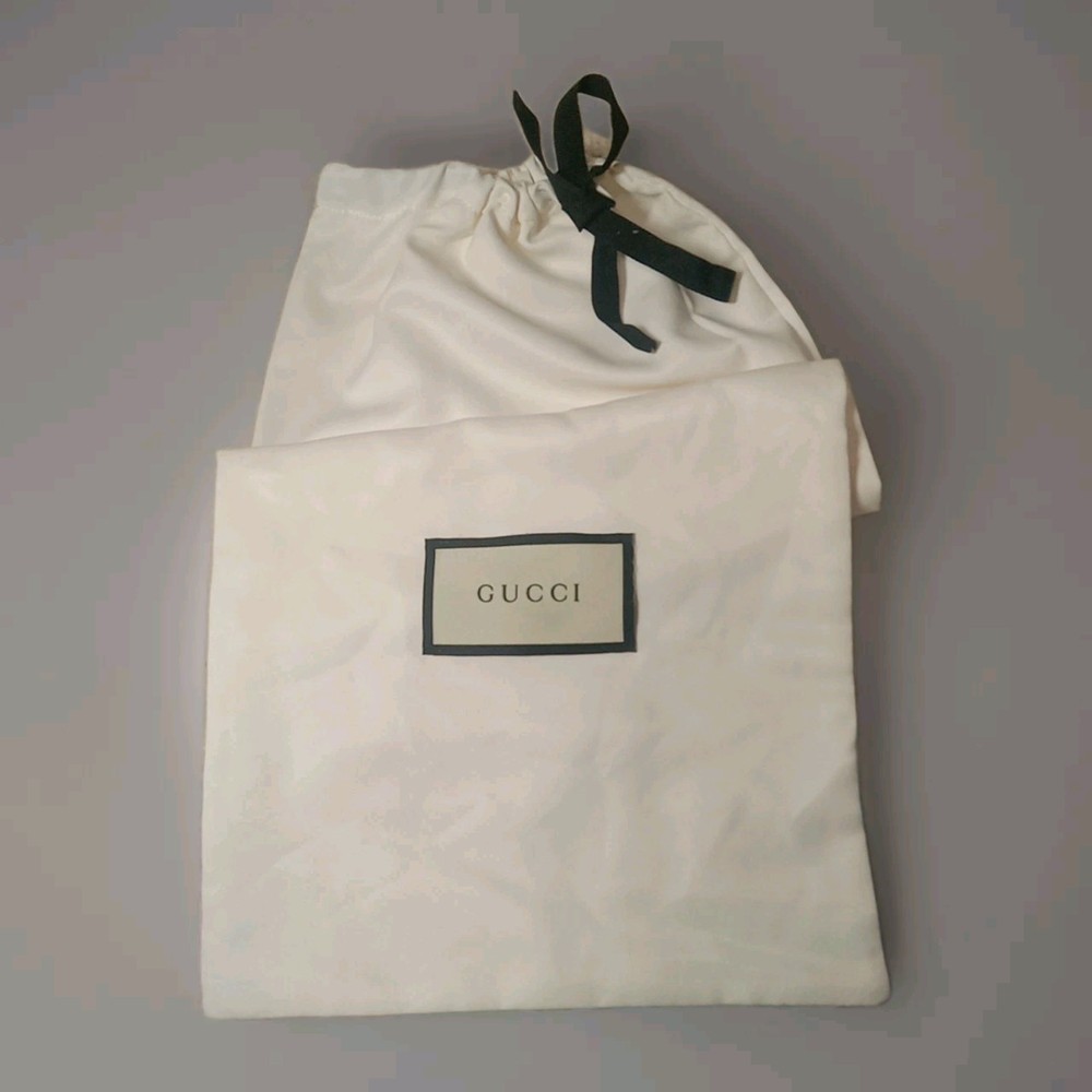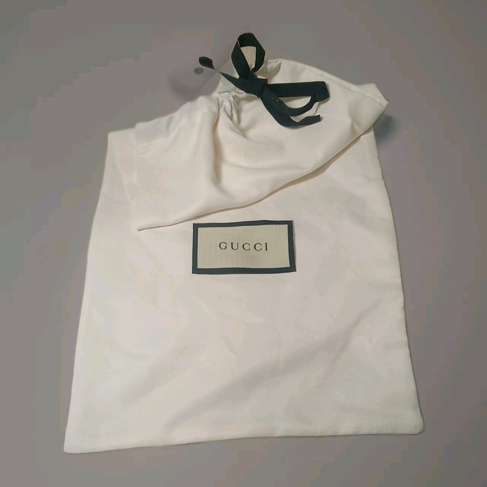 The Gucci White Satin Drawstring Dust Bag is a stylish and luxurious accessory for women. Made in Italy, this bag features a solid white color with the iconic Gucci logo accent and measures 17"×8" The satin fabric and lightweight design make it a fashionable and practical item for protecting handbags or shoes while traveling. With its elegant design and high-quality material, this dust bag represents the essence of designer fashion and sophistication.