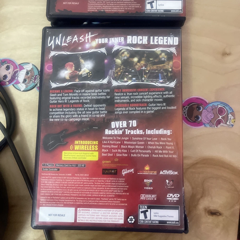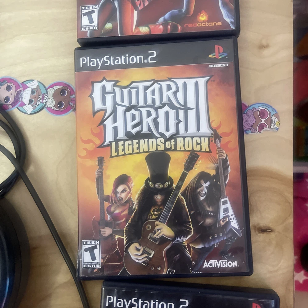 For sale: an essential starter pack for guitar hero. Everything is in overall great condition. The reverb bar is a little loose and there is something rattling in the guitar but it functions perfectly. The games are all CIB and in great shape. One game case has a small crack on the side of the case. Thanks for looking.