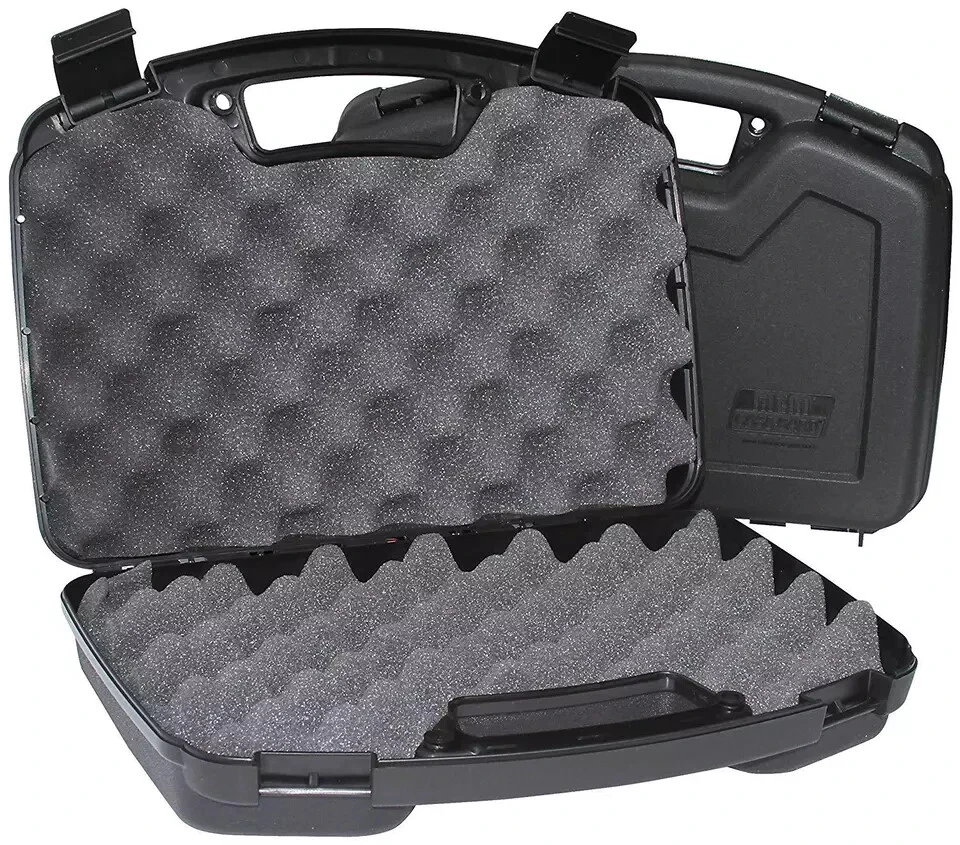 MTM Single Handgun Case for 6-Inch Revolvers (Black) Keep your firearm safe and secure with the MTM Single Handgun Case . Ideal for automatics and scoped revolvers with barrels up to 6 inches, this durable case offers excellent protection. Key Features: Outside Dimensions: 13.1" x 9.7" x 3.2"; Inside Dimensions: 12.5" x 8.1" x 3.0" For Revolvers & Automatics with 6-Inch Barrels or Less Snap Latch for secure closure Comfortable, Large Handle for easy carrying Rugged Polypropylene Construction with a textured finish for scratch resistance Thick Foam Padding for added protection Padlockable with double padlock tabs for extra security Room for Trigger Lock (not included) Family-Owned Since 1968 – MTM is known for its high-quality, innovative designs. Made to last and built for your peace of mind. Perfect for: Storing and transporting your handgun securely.