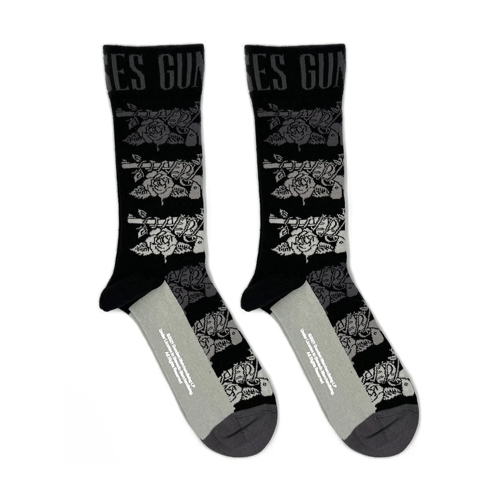 Guns N' Roses Unisex T-Shirt: Bourbon Label & Socks - Gift set A best selling rock T-shirt with a pair of socks makes the perfect gift for any die-hard music fan. The premium quality, colourful, rich woven socks are made from 86% cotton, 12% Polyamide, 2% elastane and come in size 7-11 (UK), 41-46 (EU), 8-12 (US). The officially licensed t-shirt features a digital screen printed design, short sleeves, crew neck, a soft-style finish and is Cotton. These smart gift sets are limited in number, so be sure to grab yours while you can. Rock Off officially licensed products.