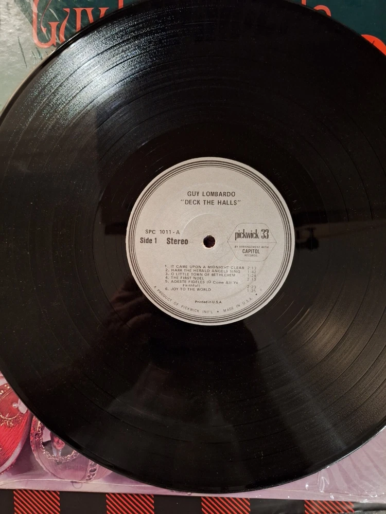 Country/Region of Manufacture:United StatesRecord Grading:Very Good Plus (VG+)Inlay Condition:Very Good Plus (VG+)Style:ChristmasMaterial:VinylFormat:RecordType:LPRecord Size:12"Language:EnglishFeatures:N/AGenre:CHRISTMASOccasion:ChristmasSleeve Grading:Excellent (EX)Color:WhiteSeller Notes:“Plays Well”Release Year:1974Case Type:Paper SleeveSpeed:33 RPMArtist:Guy LombardoRelease Title:Deck The HallsRecord Label:Capitol Records