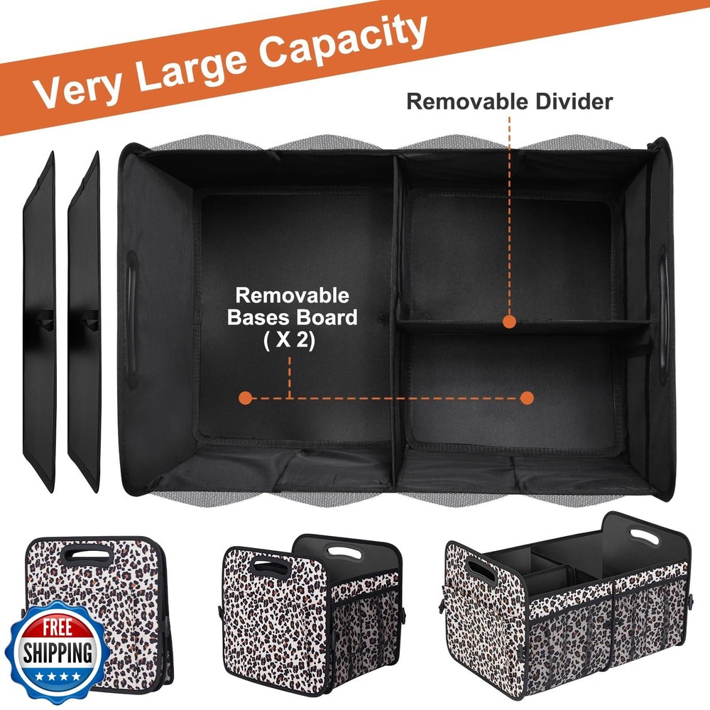 HABOPET Trunk Organizer, Collapsible Trunk Organizers and Storage, Car Accessories for Women and Men, Multi-Compartment Trunk Storage Organizer for SUV, Car, Mini-Van, Leopard Print Features Large Capacity: HABOPET Trunk Organizer has 72L capacity with 11 multiple storage pockets, and compartments with adjustable padded divider panels keep items upright. Great for groceries, sports gear, tools, emergency kits, and more. Foldable Car Organizer: Collapsible car organizers and storage space-saving design folds up when not in use, and easy to install and secure in car trunk, back seat, or floor. Multi-Purpos: This car storage organizer is a good home helper, it can be toy organizer, cloth organizer, book organizer, also can be a great partner as car accessories for men and women, it can be a car trunk organizer for suv,trucks, vans and more. Waterproof & Durable:Our car organizer trunk made of waterproof and durable oxford.The water-resistant exterior keeps your contents protected from wet gear.With its sturdy yet flexible construction, this car trunk organizer retains its shape when packed to the brim. Unique Design: The car accessories organizer with reinforced handles for easy carrying and protect your hand in safe, buttom with non-silp velcro strips can grip the surface of trunk to prevent sliding when drving. Shipping Free & Fast Shipping: We offer free shipping to most of the USA with a normal delivery time of 3-7 days. However, due to the current situation, additional delivery time (up to 3 weeks) may be required for some items. Alternative Carriers: We may use alternative carriers (e.g., USPS, FedEx, UPS) to ensure your package arrives safely and on time. Due to the use of multiple carriers, we are unable to provide a tracking number automatically. Handling Time: Orders are processed and shipped within 1-2 business days of receiving cleared payment. Shipping Restrictions: Shipping to Alaska, Hawaii, Puerto Rico, Guam, and other US territories may incur shipping charges or delivery restrictions. Please contact us before ordering, or your order can be refunded/cancelled. State Restrictions: Certain items may not be shipped to California due to state regulations. Contact for Tracking Updates: If you require tracking updates or have any concerns about the delivery of your order, please feel free to contact us, and we will be happy to assist you. Return Policy 30-Day Hassle-Free Returns: If you are not completely satisfied with your purchase, you can return the item for free within 30 days of receiving it for a full refund or exchange. Easy Return Process: Contact us, and we will provide you with a prepaid return shipping label and detailed instructions. No Restocking Fee: There are no restocking fees for returns. However, the buyer is responsible for return shipping costs if the return is not due to a seller"s error. Refund Processing: Refunds will be processed within 1 business day of receiving the returned item in its original condition. Feedback Your feedback is extremely important to us. We strive to provide the best products and customer service possible. If you are satisfied with your purchase, please take a moment to leave us a positive review. If you have any concerns or issues with your order, please contact us before leaving negative feedback. We are committed to resolving any problems and ensuring your satisfaction. Contact Us If you have any questions or concerns, please feel free to reach out to our customer support team. You can contact us through the eBay messaging system. We are available Monday to Friday, 9:00 am to 5:00 pm EST, and we will do our best to respond to your inquiry within 24 hours. Thank you for supporting our small family business!