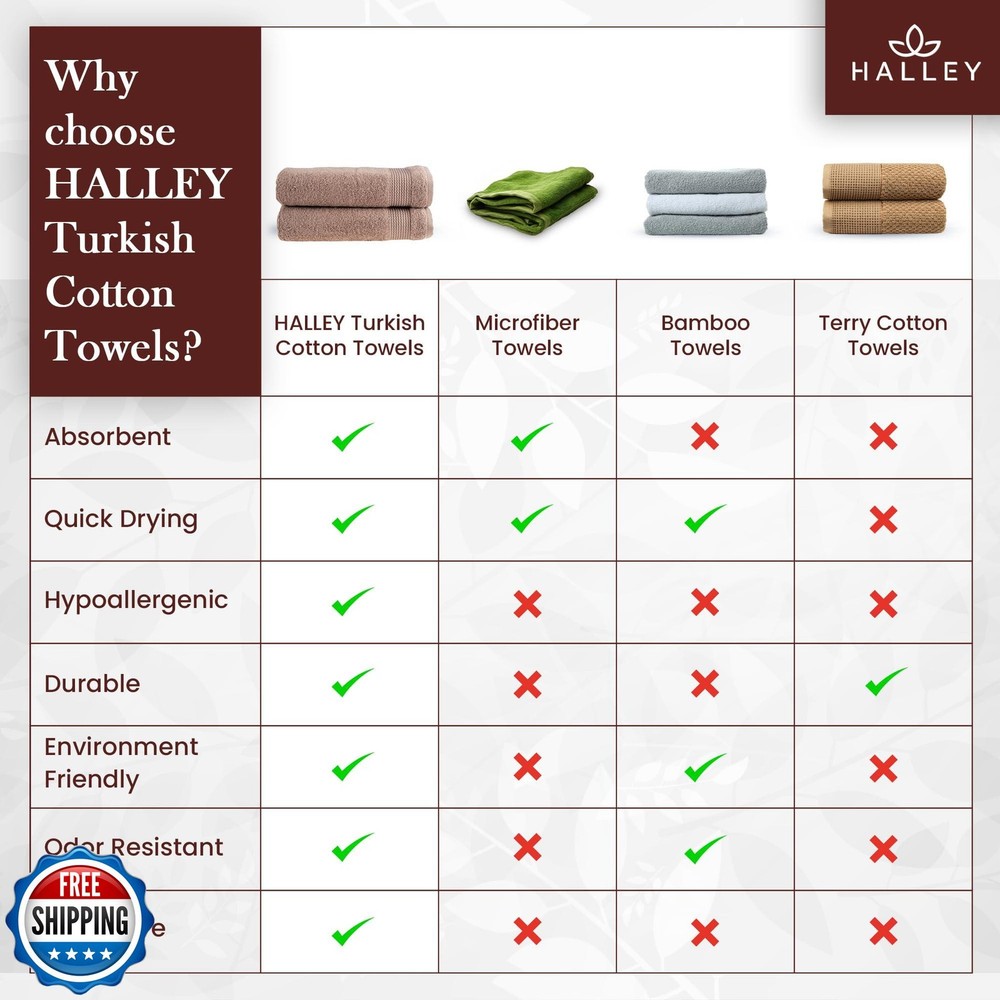 HALLEY Turkish Cotton Towels (Pack of 2) Bath Towels Super Soft Highly Absorbent 100% Cotton Towels for Bathroom and Kitchen for Mother’s Day (Taupe) Features Ultra Soft Turkish Towel Set: Indulge in our 100% cotton towels, crafted for ultimate comfort and warmth. Experience softness and convenience with bath towels, hand towels, and washcloths. Quick-Drying Cotton Beach Towel: Highly absorbent 100% cotton towel dries fast after showers or swims. Sand-proof design is ideal for hassle-free beach outings. Durable 650 GSM Quality: Experience premium quality and durability with our towels. Double-stitched for longevity, they're crafted with all-natural dyes for lasting color, even after multiple washes. Eco-Friendly Turkish Towels: Crafted from 100% pure cotton, our towels are OEKO-TEX and ISO 9001 certified, ensuring no harmful chemicals are used. Safe for you, your family, and the environment! Easy Care: Machine washable for convenience. Wash in cold water before first use to enhance absorbency. Tumble dry on low heat or air dry. Avoid fabric softener and bleach to maintain softness. Shipping Free & Fast Shipping: We offer free shipping to most of the USA with a normal delivery time of 3-7 days. However, due to the current situation, additional delivery time (up to 3 weeks) may be required for some items. Alternative Carriers: We may use alternative carriers (e.g., USPS, FedEx, UPS) to ensure your package arrives safely and on time. Due to the use of multiple carriers, we are unable to provide a tracking number automatically. Handling Time: Orders are processed and shipped within 1-2 business days of receiving cleared payment. Shipping Restrictions: Shipping to Alaska, Hawaii, Puerto Rico, Guam, and other US territories may incur shipping charges or delivery restrictions. Please contact us before ordering, or your order can be refunded/cancelled. State Restrictions: Certain items may not be shipped to California due to state regulations. Contact for Tracking Updates: If you require tracking updates or have any concerns about the delivery of your order, please feel free to contact us, and we will be happy to assist you. Return Policy 30-Day Hassle-Free Returns: If you are not completely satisfied with your purchase, you can return the item for free within 30 days of receiving it for a full refund or exchange. Easy Return Process: Contact us, and we will provide you with a prepaid return shipping label and detailed instructions. No Restocking Fee: There are no restocking fees for returns. However, the buyer is responsible for return shipping costs if the return is not due to a seller"s error. Refund Processing: Refunds will be processed within 1 business day of receiving the returned item in its original condition. Feedback Your feedback is extremely important to us. We strive to provide the best products and customer service possible. If you are satisfied with your purchase, please take a moment to leave us a positive review. If you have any concerns or issues with your order, please contact us before leaving negative feedback. We are committed to resolving any problems and ensuring your satisfaction. Contact Us If you have any questions or concerns, please feel free to reach out to our customer support team. You can contact us through the eBay messaging system. We are available Monday to Friday, 9:00 am to 5:00 pm EST, and we will do our best to respond to your inquiry within 24 hours. Thank you for supporting our small family business!