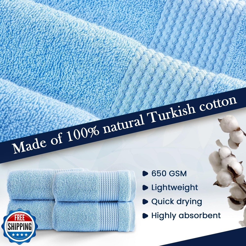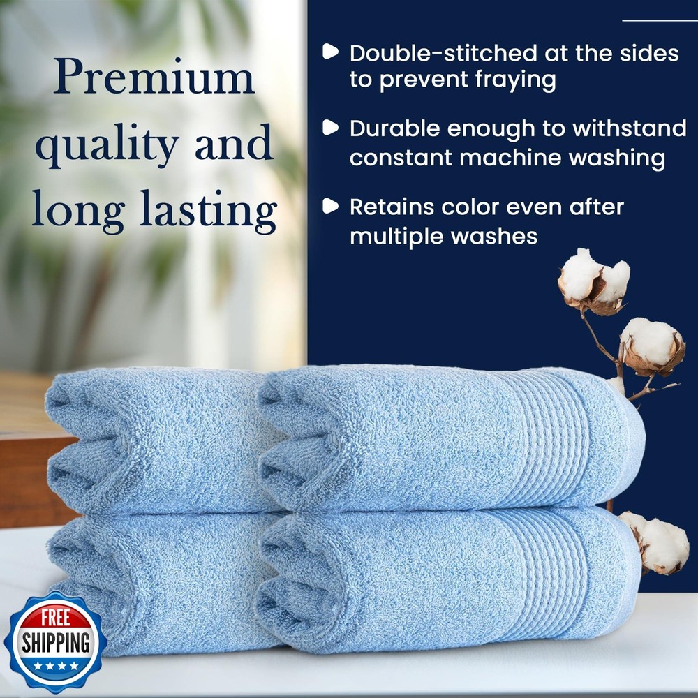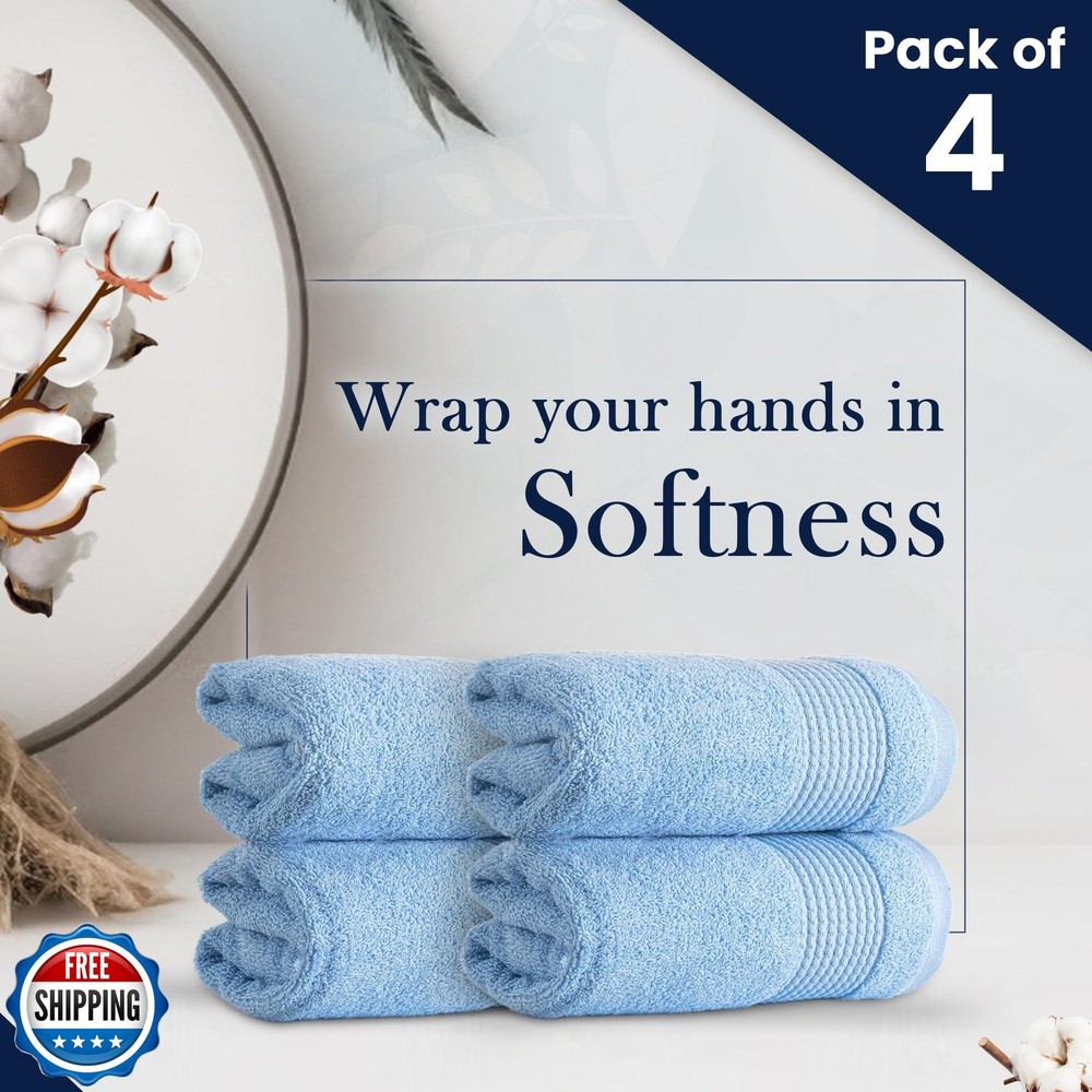 HALLEY Turkish Cotton Towels (Pack of 4) Hand Towels Super Soft Highly Absorbent 100% Cotton Towels for Bathroom and Kitchen for Mother’s Day (Powder Blue) Features Ultra Soft Turkish Towel Set: Indulge in our 100% cotton towels, crafted for ultimate comfort and warmth. Experience softness and convenience with bath towels, hand towels, and washcloths. Quick-Drying Cotton Beach Towel: Highly absorbent 100% cotton towel dries fast after showers or swims. Sand-proof design is ideal for hassle-free beach outings. Durable 650 GSM Quality: Experience premium quality and durability with our towels. Double-stitched for longevity, they're crafted with all-natural dyes for lasting color, even after multiple washes. Eco-Friendly Turkish Towels: Crafted from 100% pure cotton, our towels are OEKO-TEX and ISO 9001 certified, ensuring no harmful chemicals are used. Safe for you, your family, and the environment! Easy Care: Machine washable for convenience. Wash in cold water before first use to enhance absorbency. Tumble dry on low heat or air dry. Avoid fabric softener and bleach to maintain softness. Shipping Free & Fast Shipping: We offer free shipping to most of the USA with a normal delivery time of 3-7 days. However, due to the current situation, additional delivery time (up to 3 weeks) may be required for some items. Alternative Carriers: We may use alternative carriers (e.g., USPS, FedEx, UPS) to ensure your package arrives safely and on time. Due to the use of multiple carriers, we are unable to provide a tracking number automatically. Handling Time: Orders are processed and shipped within 1-2 business days of receiving cleared payment. Shipping Restrictions: Shipping to Alaska, Hawaii, Puerto Rico, Guam, and other US territories may incur shipping charges or delivery restrictions. Please contact us before ordering, or your order can be refunded/cancelled. State Restrictions: Certain items may not be shipped to California due to state regulations. Contact for Tracking Updates: If you require tracking updates or have any concerns about the delivery of your order, please feel free to contact us, and we will be happy to assist you. Return Policy 30-Day Hassle-Free Returns: If you are not completely satisfied with your purchase, you can return the item for free within 30 days of receiving it for a full refund or exchange. Easy Return Process: Contact us, and we will provide you with a prepaid return shipping label and detailed instructions. No Restocking Fee: There are no restocking fees for returns. However, the buyer is responsible for return shipping costs if the return is not due to a seller"s error. Refund Processing: Refunds will be processed within 1 business day of receiving the returned item in its original condition. Feedback Your feedback is extremely important to us. We strive to provide the best products and customer service possible. If you are satisfied with your purchase, please take a moment to leave us a positive review. If you have any concerns or issues with your order, please contact us before leaving negative feedback. We are committed to resolving any problems and ensuring your satisfaction. Contact Us If you have any questions or concerns, please feel free to reach out to our customer support team. You can contact us through the eBay messaging system. We are available Monday to Friday, 9:00 am to 5:00 pm EST, and we will do our best to respond to your inquiry within 24 hours. Thank you for supporting our small family business!