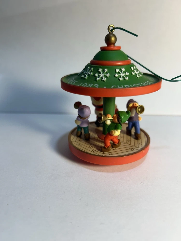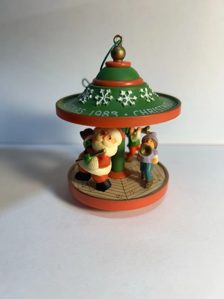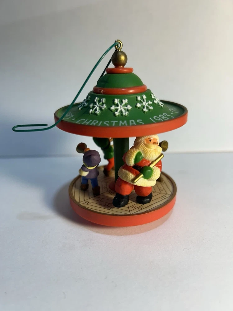 This beautiful Hallmark ornament from 1983 features a charming carousel scene with Santa and his friends. The medium-sized ornament is perfect for adding to your Christmas tree or for collectors of vintage Hallmark pieces. The ornament is an original and licensed reproduction from China and comes in a stunning green color with intricate details on the carousel figures. The ornament also includes a hanging feature and is part of the Ornaments collection. It is perfect for over 18 years age level and is a great addition to any Christmas occasion. This Hallmark ornament is a must-have for any collector or recipient of friend.