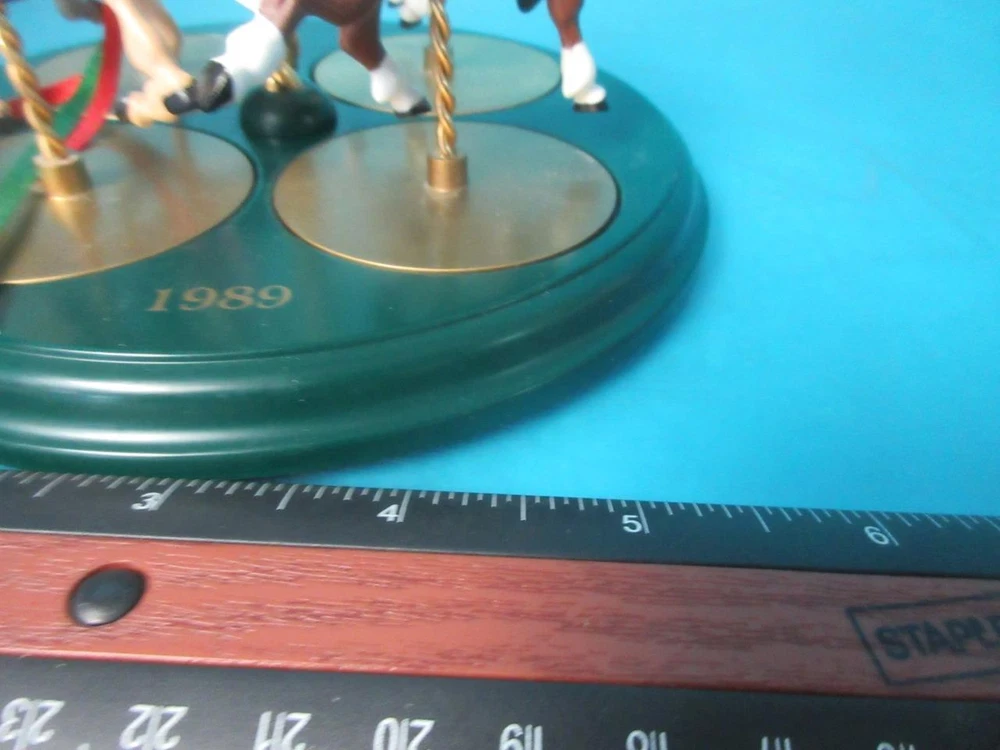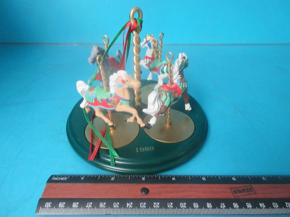 THIS IS IN GREAT CONDITION!!! Please look at the pictures for exact cosmetic condition. We offer no-questions-asked 30 day returns. HALLMARK 1989 CAROUSEL COMPLETE SET + DISPLAY STAND & FOUR HORSES ORNAMENTS STAR HALLMARK 1989 CAROUSEL COMPLETE SET + DISPLAY STAND & FOUR HORSES ORNAMENTS STAR Click images to enlarge Description Thank you for choosing us We have over 15 years of experience selling on Ebay. If you have any questions, please ask any questions through Ebay Messages All of our items are inspected and described through pictures to accurately depict the condition. Exactly what is pictured is included. ALL ITEMS COME WITH A NO-QUESTIONS-ASKED 30 DAY WARRANTY. Item Condition: THIS IS IN GREAT CONDITION!!! Please examine pictures for the cosmetic condition. Payment We accept many forms of payment. Please send a message with any questions. Shipping We do our best to ensure the safety of your purchased item. We do this by using only the best packing materials. We will ship your item within 1 business day after your item is paid for. Our primary carriers are USPS and FEDEX. We ship all of our items worldwide. We use the United States Postal Office as our primary carrier for international items. Please contact us through EBAY MESSAGES to get a quote. For Freight Shipping: All items with shipping over $100 are considered freight items . The listed price is going to a business address. Schools, residences, churches and simliar places don't count as a business as freight companies define them. In order to set up the freight shipment as quickly as possible please provide us with a business name, address, phone number and whether you have access to a loading dock or forklift to remove the skid from the delivery truck. If you will need the assistance of a lift gate truck to lower the item to the ground let us know. That is an additional charge. If you require the item shipped to a residence, it will be much more expensive. Thank you. Terms of Sale The below message applies ONLY to food items It is a part of a template. It appears on all of our listing, but It only applies to a small amount of items we have for sale. "The sale of this item MAY be subject to regulation by the U.S. Food and Drug Administration and state and local regulatory agencies. Please purchase this item if you are an authorized purchaser. If the item is subject to FDA regulation, I will verify your status as an authorized purchaser of this item before shipping the item." About Us We are located in Des Moines, Iowa and we have been selling on Ebay for over 20 years. Most of our items come direct from Universities and various Government agencies. These are trusted sources that we have worked with for many years. We carefully test and examine each item before listing it on Ebay. We pride ourselves in selling quality items with excellent customer service. This is reflected by our Ebay feedback score of 99.6% We ship all over the world. We appreciate your business. If you have any questions, please message us!! Contact Us We are located in Des Moines, Iowa. Feel free to contact us through Ebay messages. Pictures sell! Auctiva offers Free Image Hosting and Editing. 300+ Listing Templates! Auctiva gets you noticed! The complete eBay Selling Solution.