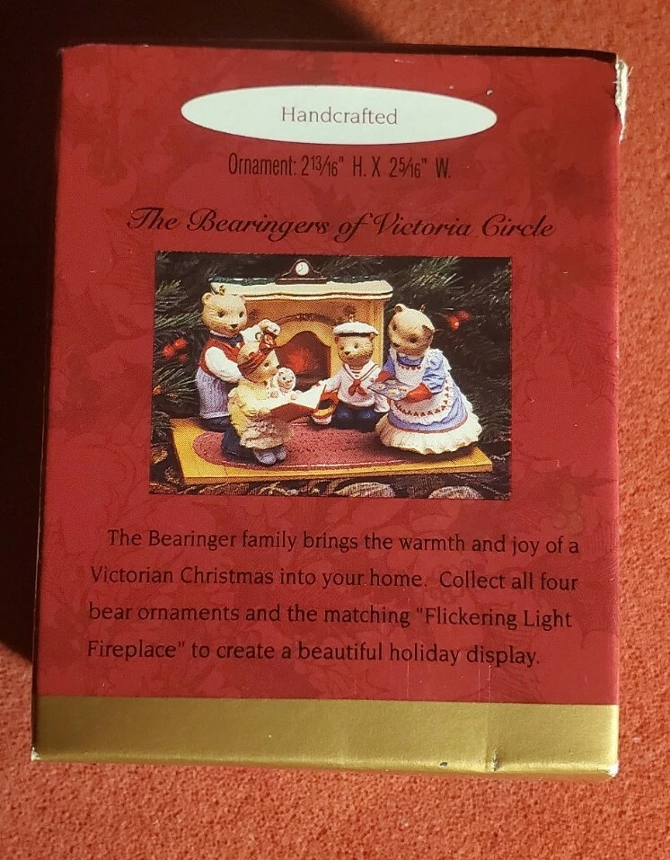 Add a charming touch to your Christmas decor with the Hallmark Bearingers Fireplace Collection. This set includes four delightful keepsake ornaments featuring the endearing Bearingtons, meticulously crafted in acrylic to enhance your holiday ambiance. Each ornament showcases the bears enjoying festive activities, designed to bring a smile to your face and warmth to your home. Collectors will appreciate that this series dates back to 1993, making it a vintage treasure from Hallmark's renowned ornament line. Whether you're decking out your tree or adding to your collection, these adorable bears are sure to become a cherished part of your holiday tradition.
