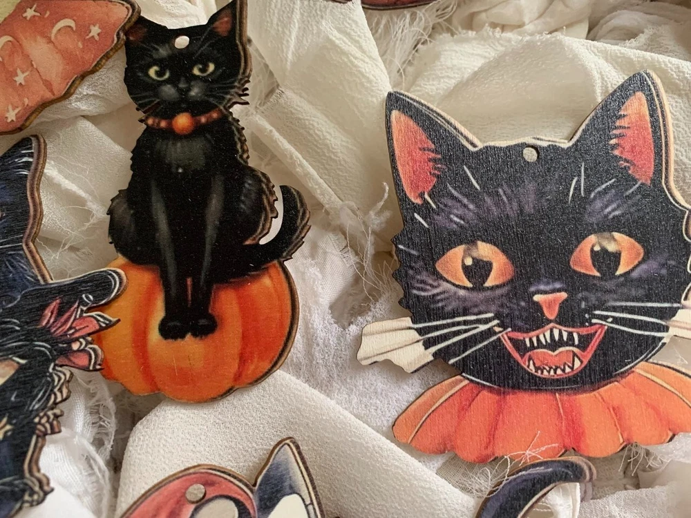 You will receive 12 ornaments when you purchase. 12 wood ornaments Hole for handing. Just add a wire or string or ribbon. 3.35 x 2.95 x 0.08 each Adorable figures. ALL FIGURESD ARE VINTAGE STYLE TAKEN FROM OLD POST CARDS AND REPRODUCED HERE FOR YOU. Display on a fir or feather tree. Wreath. Use in a garland. Tie to a glass.