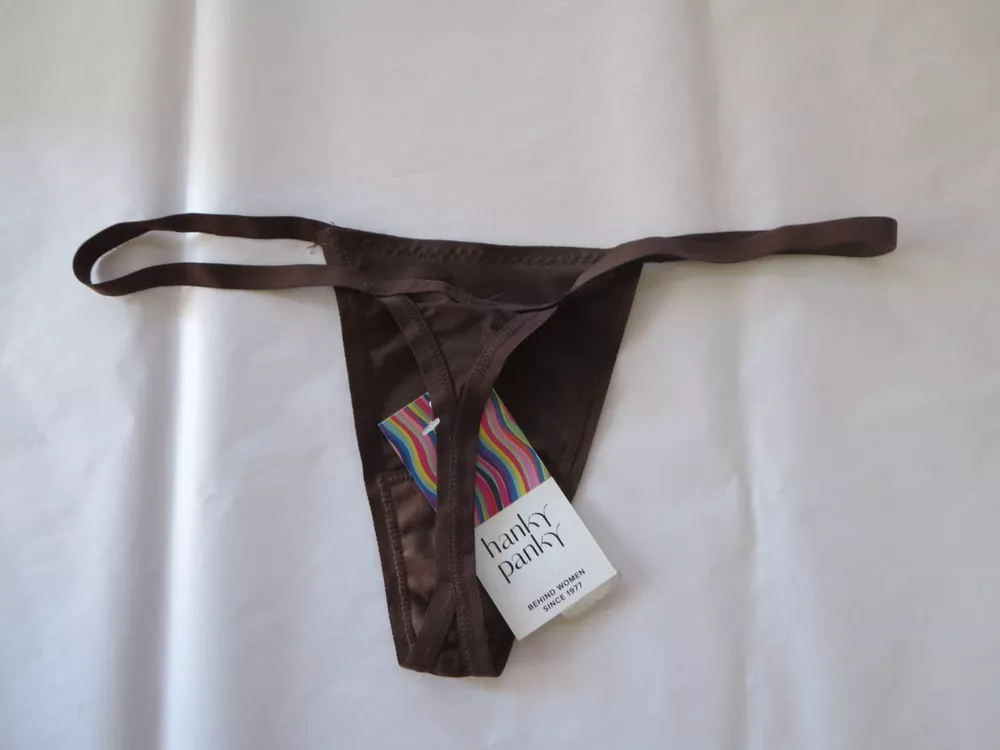 HANKY PANKY PANTY NEW WITH TAG SIZE: ONE SIZE COLOR: MAHOGANY / BROWN . AS SHOWN ACTUAL ITEM AS SHOWN EXCEPT BLACK ON MODEL. FROM SMOKE FREE HOME HANKY PANKY WOMEN'S G-STRING THONG PANTY MSRP $20 Low rise G-string has breathable microfiber at front and triangle panel at upper back. Made of nylon and Lycra spandex with Supima cotton crotch liner. Elastic waistband provides a secure fit. Front and back triangle panels are breathable microfiber knit for comfort. Interior tag gives fabric/care needs. Low rise styling. Seamless rear. Minimal rear coverage. Supima cotton crotch liner. One size