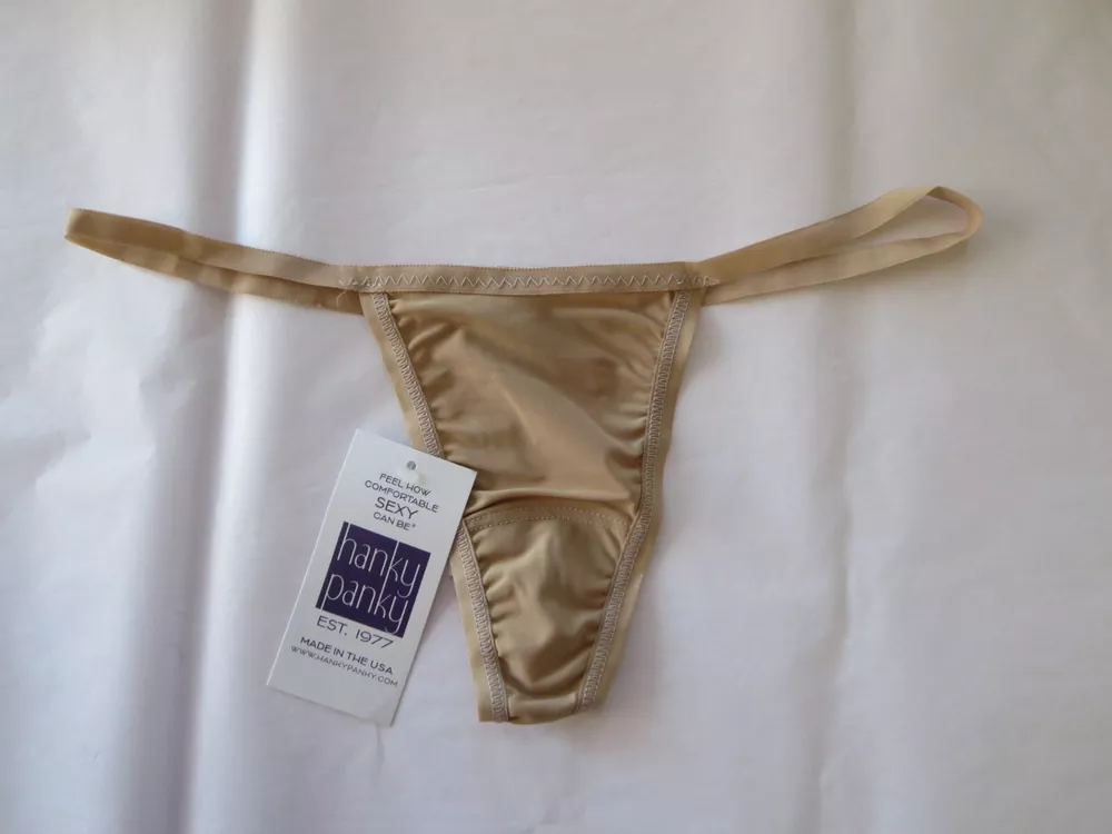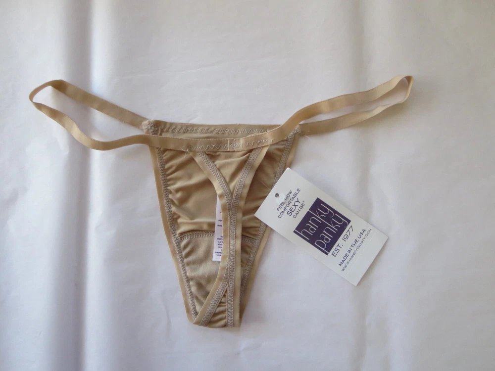HANKY PANKY PANTY NEW WITH TAG SIZE: ONE SIZE COLOR: TAUPE AS SHOWN ACTUAL ITEM AS SHOWN EXCEPT BLACK ON MODEL. FROM SMOKE FREE HOME HANKY PANKY WOMEN'S BREATHESOFT G-STRING THONG PANTY MSRP $20 Low rise G-string has breathable microfiber at front and triangle panel at upper back. Made of nylon and Lycra spandex with Supima cotton crotch liner. Elastic waistband provides a secure fit. Front and back triangle panels are breathable microfiber knit for comfort. Interior tag gives fabric/care needs. Low rise styling. Seamless rear. Minimal rear coverage. Supima cotton crotch liner. One size