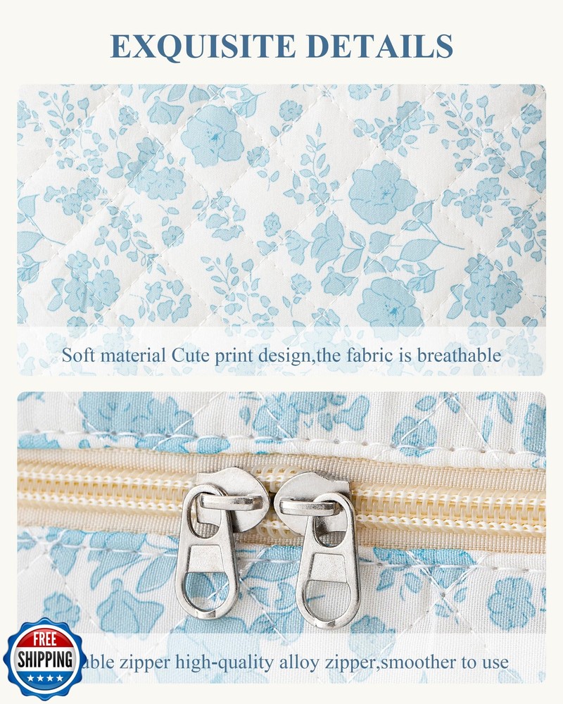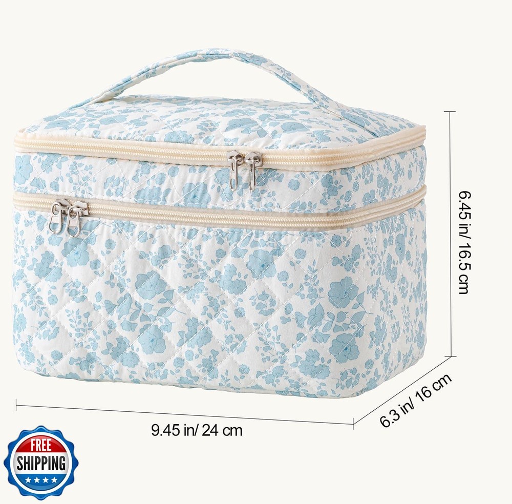 HBselect Quilted Makeup Bag, Portable Cotton Large Travel Makeup Bag, Cute Coquette Blueflowers Floral Cosmetic Bags Toiletry Bags for Women Teen Girls Mom Features SOFT COTTON MATERIAL - The quilted cotton makeup bag is made of high-quality cotton, reliable and stable, which is lightweight and good in texture, soft and durable. The zipper is smooth to use, which looks pretty, and opens, and closes the makeup travel bag smoothly and easily. LARGE CAPACITY - Makeup bag Size: 10.1 x 5.9 x 5.3 inches, Portable and large capacity. The travel makeup bag can hold your lipstick, cosmetic accessories, lipstick, lip gloss, brushes, skincare products, toiletries, 3c items, stationery kit, watercolor pens pencils, painting brushes, makeup tools, toiletries, or travel essentials and can be easily folded up and placed in a handbag or suitcase when not in use QUILTED DESIGN - This cute floral cosmetic bag features a floral pattern design, is fashionable and skin-friendly, and is comfortable to the touch. The stylish design makes these makeup bags a fashionable accessory, suitable for both your everyday makeup routine and special occasions, allowing you to showcase your personal style MULTI-PURPOSE - HBselect Makeup bag organizer can be used as a daily handbag, cosmetic bag and skincare organizing bag, storage bag, pencil pouch, and toiletry bag. The initial makeup storage bag can be used during travel because it is lightweight and does not take up too much space in the suitcase. PERSONALIZED GIFTS FOR WOMEN - Our makeup bags are cute and individualized and are great gifts for women, such as mothers, wives, daughters, sisters, teachers, and friends. Makeup Bags for women could be the perfect personalized gifts for Birthday Gifts, Mother's Day Gifts, Christmas Gifts, Valentine's Day Gifts, Graduation Gifts, Teachers' Day Gifts, and more. Our Makeup pouch is for women of all ages. Bring back amazing memories when she uses it every time Shipping Free & Fast Shipping: We offer free shipping to most of the USA with a normal delivery time of 3-7 days. However, due to the current situation, additional delivery time (up to 3 weeks) may be required for some items. Alternative Carriers: We may use alternative carriers (e.g., USPS, FedEx, UPS) to ensure your package arrives safely and on time. Due to the use of multiple carriers, we are unable to provide a tracking number automatically. Handling Time: Orders are processed and shipped within 1-2 business days of receiving cleared payment. Shipping Restrictions: Shipping to Alaska, Hawaii, Puerto Rico, Guam, and other US territories may incur shipping charges or delivery restrictions. Please contact us before ordering, or your order can be refunded/cancelled. State Restrictions: Certain items may not be shipped to California due to state regulations. Contact for Tracking Updates: If you require tracking updates or have any concerns about the delivery of your order, please feel free to contact us, and we will be happy to assist you. Return Policy 30-Day Hassle-Free Returns: If you are not completely satisfied with your purchase, you can return the item for free within 30 days of receiving it for a full refund or exchange. Easy Return Process: Contact us, and we will provide you with a prepaid return shipping label and detailed instructions. No Restocking Fee: There are no restocking fees for returns. However, the buyer is responsible for return shipping costs if the return is not due to a seller"s error. Refund Processing: Refunds will be processed within 1 business day of receiving the returned item in its original condition. Feedback Your feedback is extremely important to us. We strive to provide the best products and customer service possible. If you are satisfied with your purchase, please take a moment to leave us a positive review. If you have any concerns or issues with your order, please contact us before leaving negative feedback. We are committed to resolving any problems and ensuring your satisfaction. Contact Us If you have any questions or concerns, please feel free to reach out to our customer support team. You can contact us through the eBay messaging system. We are available Monday to Friday, 9:00 am to 5:00 pm EST, and we will do our best to respond to your inquiry within 24 hours. Thank you for supporting our small family business!