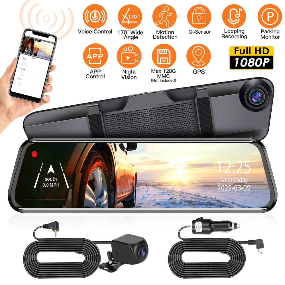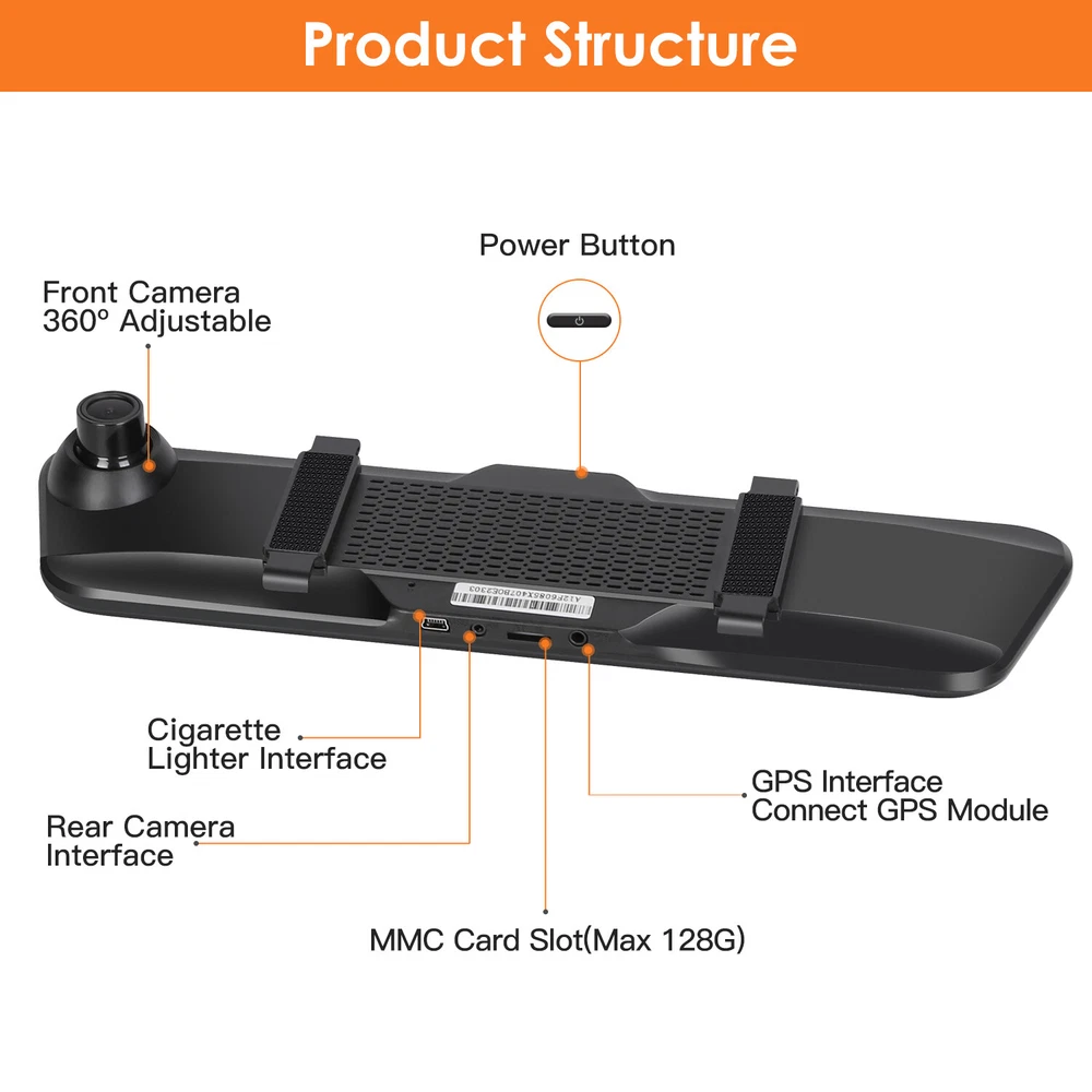 1FAST SHIP - GOOD QUANLITY - FREE SHIPPING - FREE RETURN - WARRANTY Featured Item Product Description 4K 12" Screen Car Dash Camera Overview: Designed with 12in IPS touch screen, our dash camera allows you to operate without pressing buttons anymore. Featuring dual lens and picture-in-picture display, the 1080P front and rear camera can provide clear and sharp videos and always keep you informed of the road status behind. Features auto reversing visual, parking monitor, G-sensor and screen off image to greatly ensure your safety and property. The night vision, app and voice control also provide much convenience during driving. Support max 64G MMC card to have a seamless loop record, too. Features: Dual Lens: The 1080P dual cameras provide clear and sharp videos,which capture small details when involved in a collision,keeps you well informed of the road status behind and protects you against backing into another car while parking. With a wide field of vision up to 170°,it can catch any vehicle in the sides of your car,proving that you are not at fault in the accident. The picture-in-picture display also allows you to view front and rear view simultaneously. Night Vision & APP Control: The night vision function allows you to be informed of the situation with sharp full color for front and rear camera at night. Connect to the mobile app "viidure" via Wi-Fi(Start With "CVR_44601ccc") and watch live streaming view,replay or download recorded footage on the go. Besides,this dash cam also supports GPS to precisely pinpoint the vehicle’s location,routes on the map and records the driving route,real-time speed,location,etc.,which will provide further additional evidence if an accident occurs. Seamless Loop Recording &Voice Control: Support max 128G MMC card to have a seamless loop record. When the memory card is full,the camera will automatically overwrite those old videos with the newly recorded ones. In this way,you will always have access to latest ones. Also supports voice control. Just put your hands on the steering wheel,instead of tapping the screen frequently,you can directly use voice commands to implement some basic functions. G-sensor & Motion Detection: When G-sensor detects sudden shock,it will save the clip of the accident to the memory card and lock in place to avoid being overwritten. Our dash cam also prevents unnecessary traffic collision when parking. The parking monitor monitors your car's surroundings in 24 hours while parked. When the car starts,the camera starts recording. When the car stops,the camera stops. Tips:it’s recommended to connect the camera to the car battery to ensure adequate power. Easy To Operate & Install: Designed with 12in IPS touch screen,it’s easy for you to operate. Just stick the camera to the windshield,space-saving and not blocking your line of sight while driving. Specifications: Brand: iMounTEK Product Type: 12in Car Dash Cam Color: Black Material: ABS Power Source: Cigarette Lighter Plug Power Interface: 5V/3A Inbuilt Battery: 3.7V 400mAh Rechargeable Battery(Battery is not for individual sale) Light Source Frequency: 50Hz/60Hz Inbuilt Microphone/Speaker Power: 8R 1W Screen: 12in IPS 2.5D Curved Touch Screen Field of View: Front 170°, Rear 170° Recording Resolution: 1920*1080P/4K (Front), 1920*1080P (Rear) Video Format: TS Photo Format: JPEG Front Camera Adjustable Angle: 360º Memory: Support Max 128G MMC Card (Class 10) Support Language: English, Traditional Chinese, Chinese, Japanese, French, German, Korean, Italian, Russian, Spanish etc.. Supported Functions: Parking Monitor, G-sensor, Screen off Image, Auto Reversing Visual, Loop Recording, Picture-in-Picture Display, Night Vision, GPS Record Time: 1/2/5Mins Front Camera Size: 31x8x2.5cm/12.2x3.1x0.98in Front Camera Weight: 378g/0.83 lbs Rear Camera Size: 2.3x2.3x3.2cm/0.9x0.9x1.3in Rear Camera Cable Length: 600cm/19.7ft Rear Camera Weight(With Cable): 117g/0.26 lbs Cigarette Lighter Cable Length: 346.5cm/11.4ft Package Size: 37x13x8cm/14.56x5.11x3.15in Package Weight: 971g/2.14 lbs Package Contents: 1 x Car Dash Cam 1x Rear Camera 1 x Cigarette Lighter Cable 2 x Bandages 2 x Screws 1 x Sticker 1 x 32GB MMC Card 1 x User Manual 1080P 4.3" Screen Car Dash Camera Features: Dual Lens: The 1080P front camera provides clear and sharp videos,capturing small details when involved in a collision. Besides,the rear camera always keeps you informed of the road status behind and protects you against backing into another car while parking. With a wide field of vision up to 140°,it can catch any vehicle in the sides of your car,proving that you are not at fault in the accident. The picture-in-picture display also allows you to view front and rear view simultaneously. 4.3In Touch Screen: Designed with 4.3in touch screen,it’s easy for you to operate. You can also adjust different modes via the button on the side. Seamless Loop Recording: Support max 64G MMC card to have a seamless loop record. When the memory card is full,the camera will automatically overwrite those old videos with the newly recorded ones. In this way,you will always have access to latest ones. G-sensor & Motion Detection: When G-sensor detects sudden shock,it will save the clip of the accident to the memory card and lock in place to avoid being overwritten. Our dash cam also prevents unnecessary traffic collision when parking. The parking monitor monitors your car's surroundings while parked. When the car starts,the camera starts recording. When the car stops,the camera stops. Tips:it’s recommended to connect the camera to the car battery to ensure adequate power. Easy To Install: Just stick the camera to the windshield,space-saving and not blocking your line of sight while driving. Friendly Reminder: This dash cam cannot support GPS. Specifications: Brand: iMounTEK Product Type: 4.3in Car Dash Cam Color: Black Material: ABS Power Source: Cigarette Lighter Plug Power Interface: 5V/1A Inbuilt Battery: 200mAh Polymer Battery(B