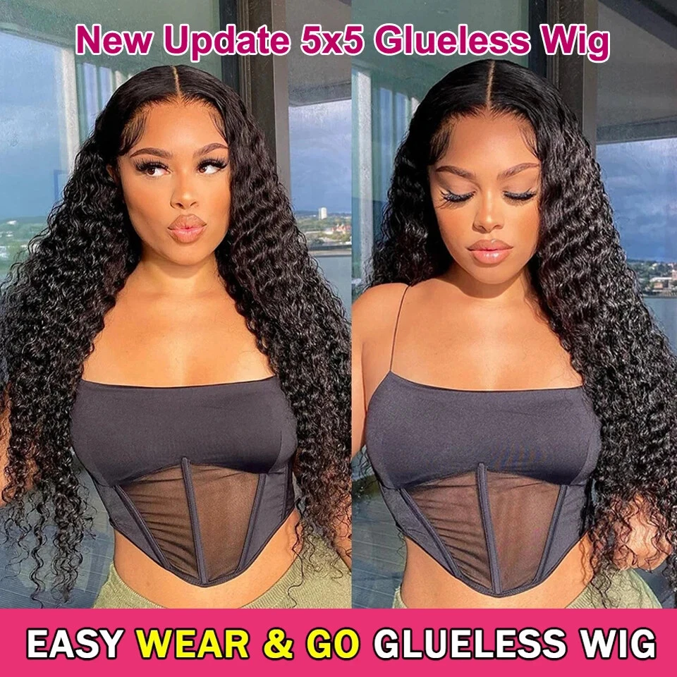 $ 48.2413x4 HD Lace Front Human Hair Wig Curly 4x4 7x5 Glueless Preplucked