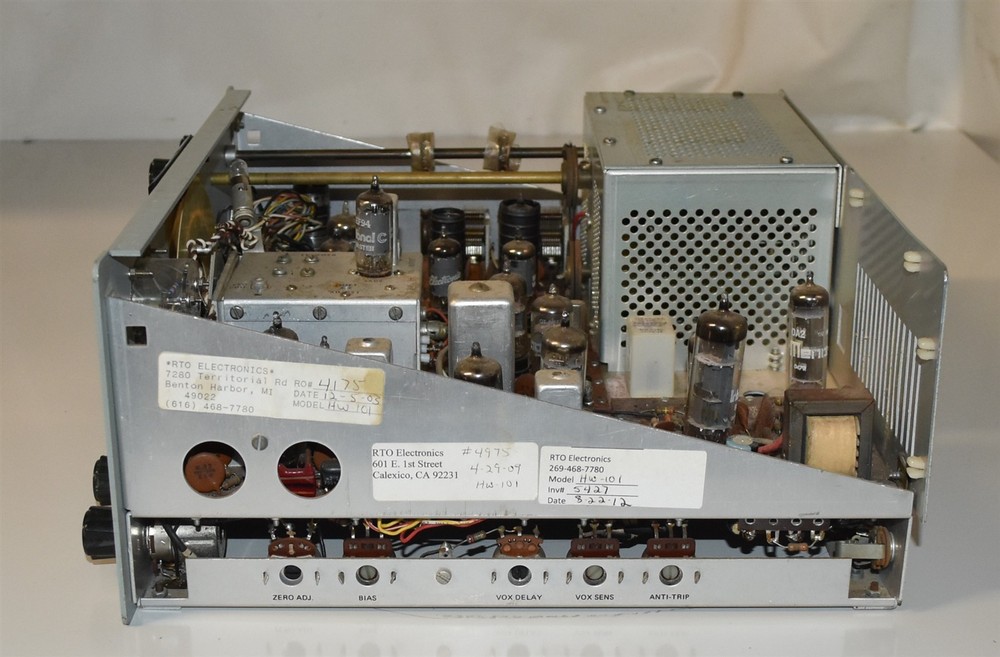 I am pleased to present for your consideration a Heathkit HW-101 HF Transceiver. Radio does not power up, it has some onboard power issue. Modified, some former owner installed latches on the cabinet. Has its repair history on the side internal panel. A classic HF transceiver, Heathkit made thousands of these radios. Auction includes radio only, no accessories. Sold as-is, for parts or repair. No reserve! High bid gets it! Check out my other items ! Thanks! If you have any questions please contact me for more information. UNLESS NOTED, LISTING INCLUDES ONLY WHAT IS SHOWN! Florida Residents must pay 7% sales tax. Other state tax collected by eBay. SHIPPING: NO OVERSEAS SHIPPING! SORRY, PLEASE DON'T BOTHER ASKING. I ABSOLUTELY WILL NOT SHIP OVERSEAS!! Sorry, no pickups. Unfortunately with my schedule I simply do not have time to handle them. SIGNATURE CONFIRMATION: I follow eBay's policy of requiring a signature at time of delivery on any item valued OVER $750. NOTE: THIS APPLIES ONLY FOR ITEMS VALUED AT $750 OR OVER!! OTHERWISE, THERE IS NO SIGNATURE REQUIREMENT! Both FedEx and the USPS will hold a parcel at their local office for you to pickup at your convenience if someone cannot be available during the day when the parcel is delivered. However, if that arrangement also causes problems, then I cannot help since I can not wave this requirement. Powered by SixBit's eCommerce Solution