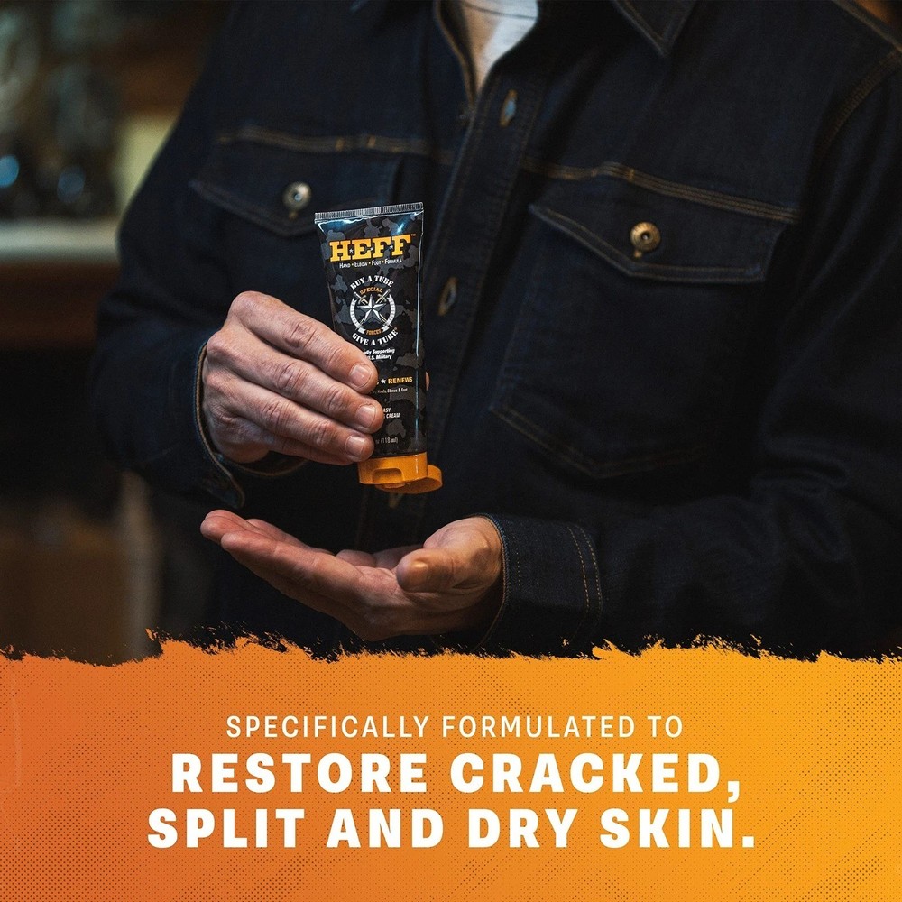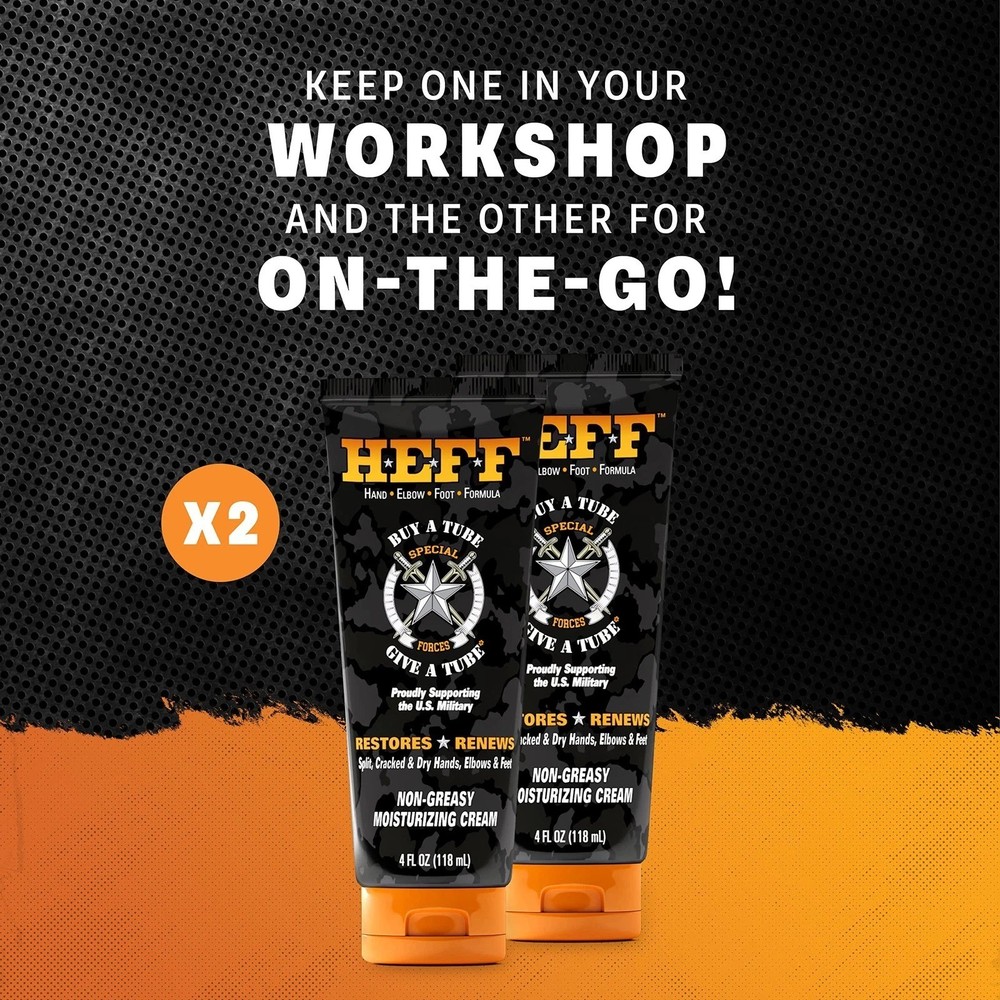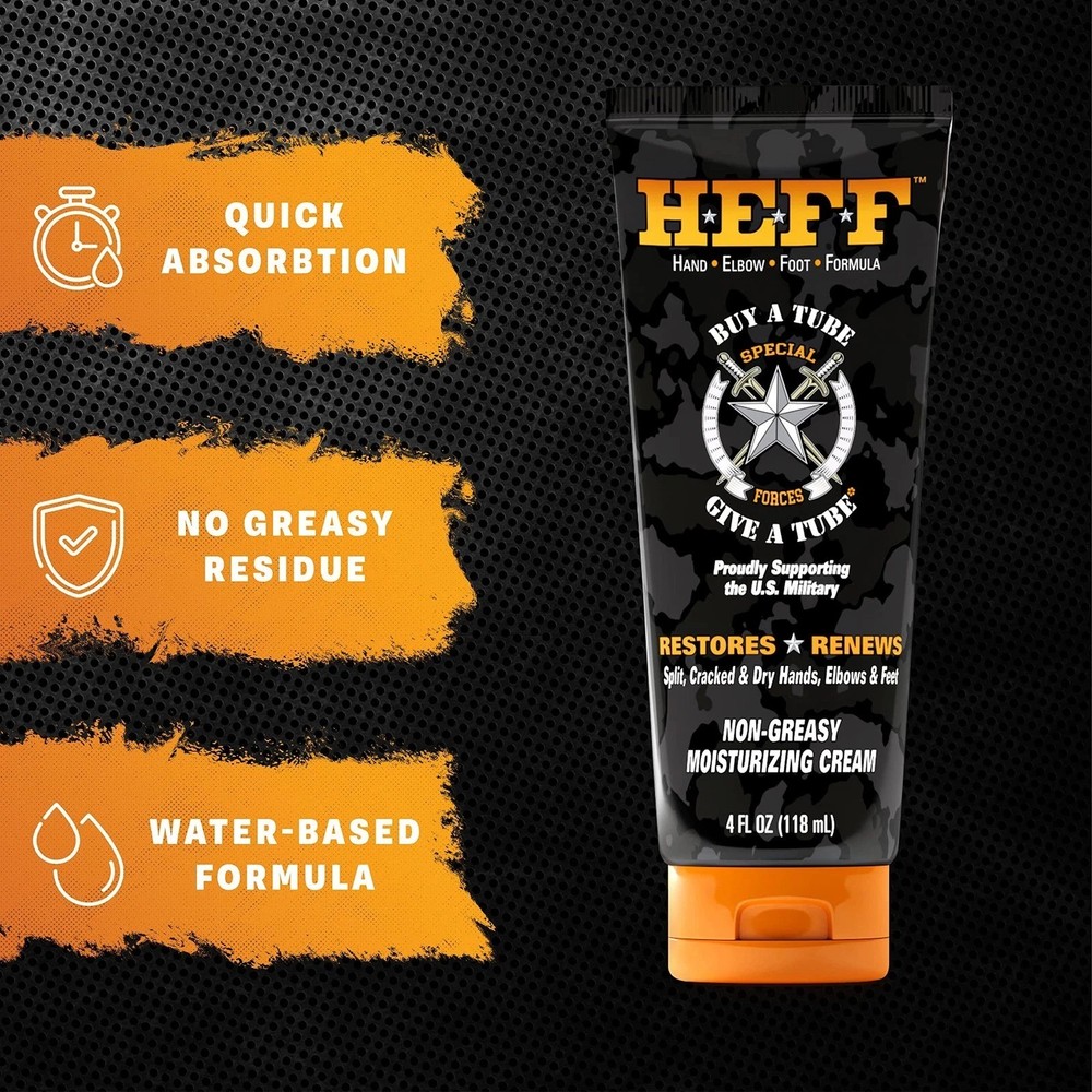 PROFESSIONAL-GRADE FORMULA: HEFF professional grade non-greasy moisturizing cream repairs, restores, and renews split, cracked and dry hands, elbows and feet. HELPS WITH SKIN IRRITATION: HEFF helps with dry, flaky skin, skin irritations, and razor bumps on your toughest, hardest working places. DRY SKIN RELIEF: Great body cream for DIY'ers prone to getting dry, chapped, cracked skin while completing home improvement and automotive projects. BUY A TUBE, GIVE A TUBE: Through HEFF’s partnership with Operation Gratitude: once activated online, HEFF will donate a tube to care packages for our Nation’s Heroes to say Thank You to all who serve. HEFF helps to diminish tough calluses FAST! Quick absorbing.
