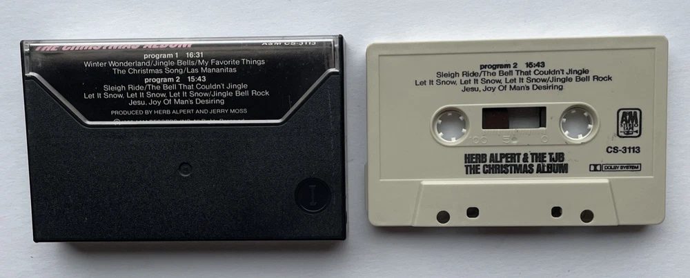 Herb Alpert & The Tijuana Brass – The Christmas Album Label: A&M Records – CS-3113 Format: Cassette , Album Country: US Released: Genre: Jazz , Pop Style: Latin Jazz , Holiday Tracklist A1 Winter Wonderland A2 Jingle Bells A3 My Favorite Things A4 The Christmas Song A5 Las Mananitas B1 Sleigh Ride B2 The Bell That Couldn't Jingle B3 Let It Snow, Let It Snow, Let It Snow B4 Jingle Bell Rock B5 Jesu, Joy Of Man's Desiring Companies, etc. Copyright © – A&M Records, Inc. Recorded At – A&M Studios Recorded At – Gold Star Studios Credits Arranged By – Herb Alpert Arranged By [Voices & Strings Arranged By] – Shorty Rogers Engineer – Larry Levine Producer – Herb Alpert , Jerry Moss Notes Barcode and Other Identifiers Barcode (Text): 0 7502-13113-4 Barcode (Scanned): 075021311343