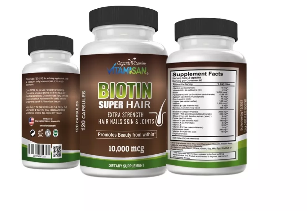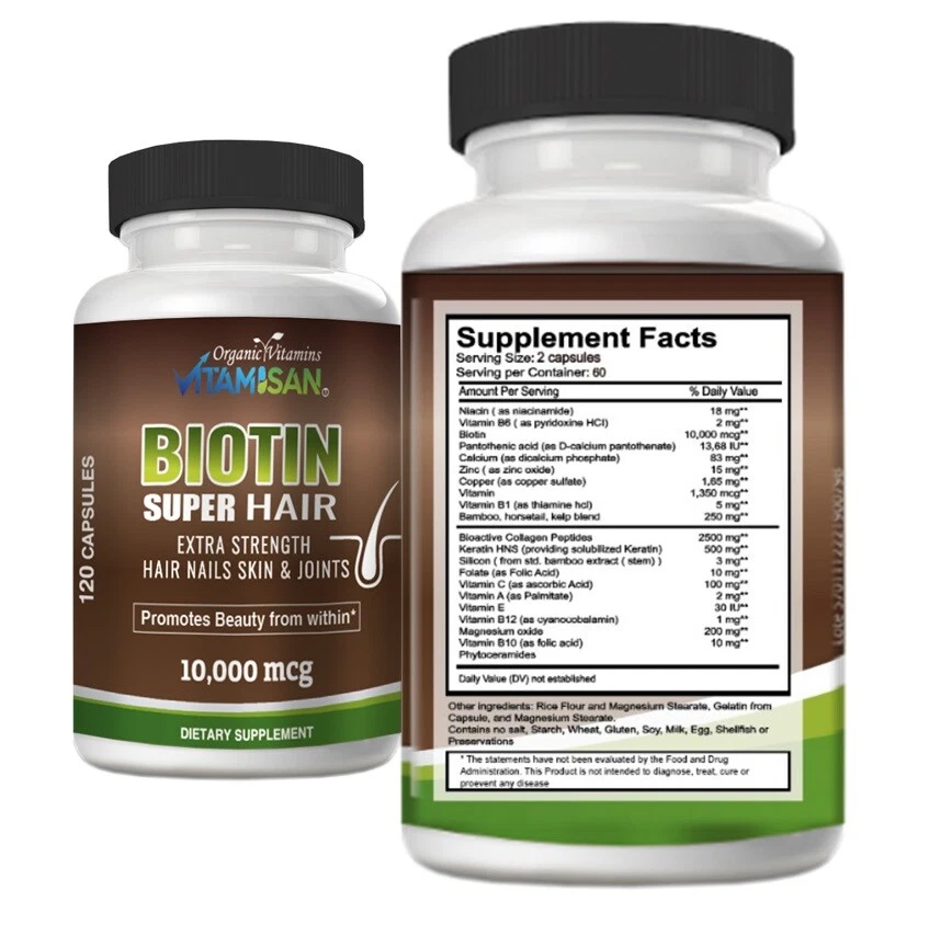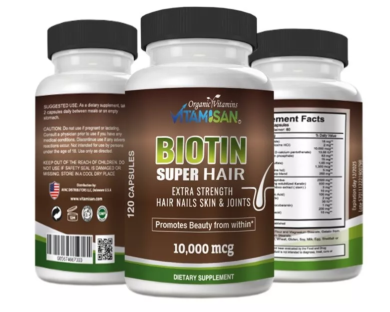 1 BOTTLES BIOTIN SUPER HAIR 120 CAPSULES EACH BOTTLE ORGANIC VITAMIN VITAMISAN BRAND SEE PICTURES FOR THE INGREDIENTS FREE SHIPPING USA Condition is "NEW". Shipped with USPS First Class. How long does it take for hair loss treatment to work? It'll take at least 3 months of treatment to prevent further hair loss and to start hair regrowth LEGAL DISCLAIMER ? The statements made herein have not been evaluated by the Food and Drug Administration. The products & the information provided on this web site are not intended to treat* diagnose*cure*prevent or mitigate any condition or disease. As always, consult with your health care professional before taking any-medication or nutritional supplement. NOTE this product is not intended to cure treat any medical condition. Must use for at least 60 days in advance and in constantly use or application. ? We offer 2-day shipping and handling to ship your item and we offer USPS first class service package will could result in 5-9 days depending on carrier for delivery - please note that EBAY estimated times are only an estimation date not accurate. THANK YOU WE APPRECIATE CONTACTING US IF ANY CONCERN FIRST