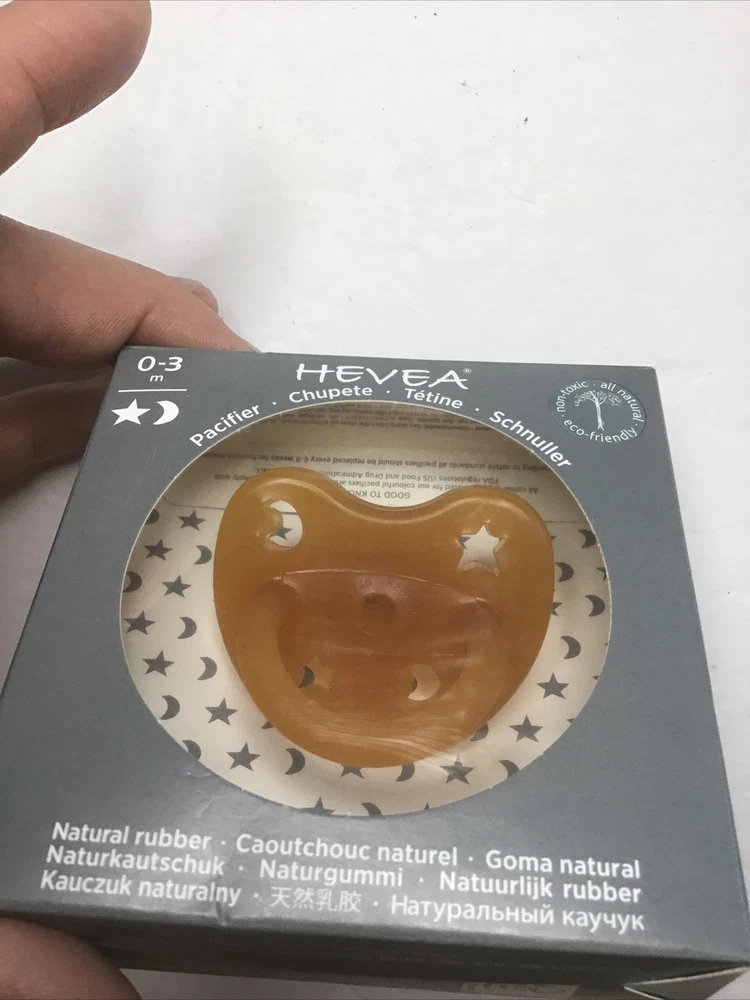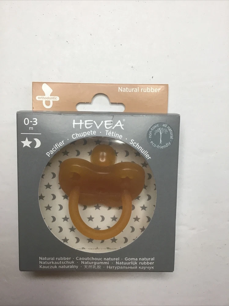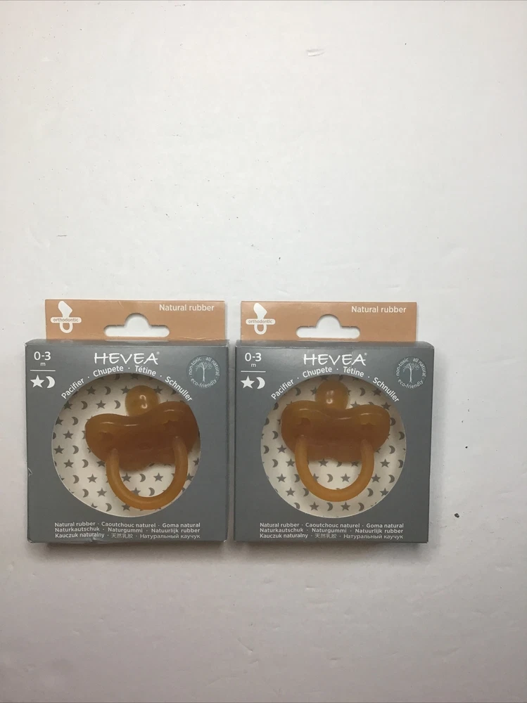 HEVEA Natural Rubber Pacifiers Cute Star And Moon New 0-3 M Lot Of 2 Packs. 2-packs Non toxic All natural Eco-friendly Little moon and Star on the Pacifiers Natural rubber box’s may have very little wear to no wear on the box’s I only ship to the continental United States