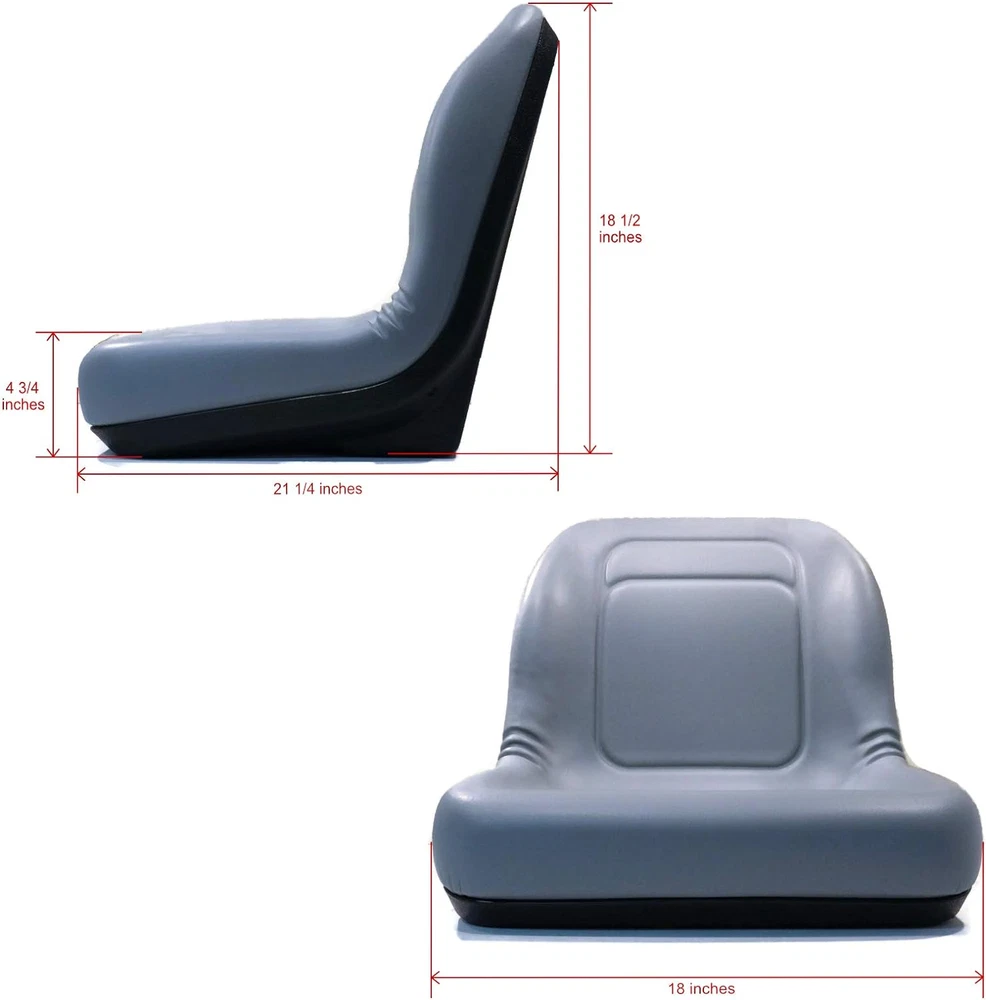 Gray High Back Seat Specs - Seat Back Height: 18 1/2". Mount Pattern Type: Multi-hole. Color: Gray. Material: Vinyl. Refer to images 2 & 3 for more information Includes - (1) Gray High Back Seat; comes as shown in the first image Features - Heavy-duty vinyl covering. Vacuum formed waterproof vinyl. Ergonomic cushions to ensure operator comfort. Durable blow molded plastic frame is corrosion resistant. Central drain hole prevents water build-up. 19" high-back seat which will replace both original 16" and 19" high-back seats. Multiple mounting patterns The most reliable way of verifying fitment is to refer to the images above on the bolt pattern measurements and verify that they match your original seat pattern. This seat requires standard 5/16"-18 UNC RH thread bolts for mounting (NOT included). Applications with pivot rods may need a bracket (NOT included). The original seat switch may not work for this seat Our staff constantly strives to provide clear and concise product information. We understand that sometimes it can be difficult to confirm the exact product needed. It is your responsibility to confirm this is the correct product you require; therefore, we encourage all customers to fully review the information provided in this listing prior to purchase. Be sure to review photos, specifications, and bullet points closely to verify this is the correct product for you. Nothing is worse than having to return a product, trust us…we get it. Let’s work together to avoid this! If you are unsure as to whether or not this is the correct product you are looking for, please ask. If you seek assistance we will need as much information as possible to help you find the product you are looking for. Our knowledgeable product specialists are always willing to help ensure that you’re getting the correct product.